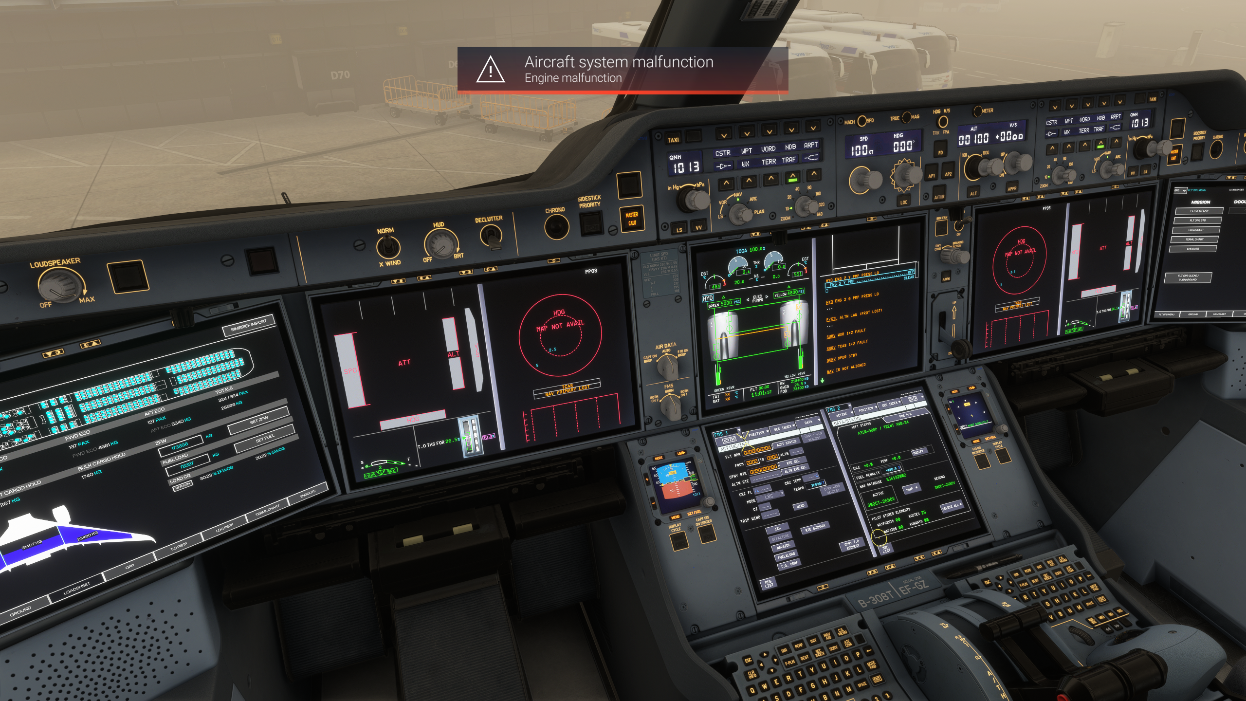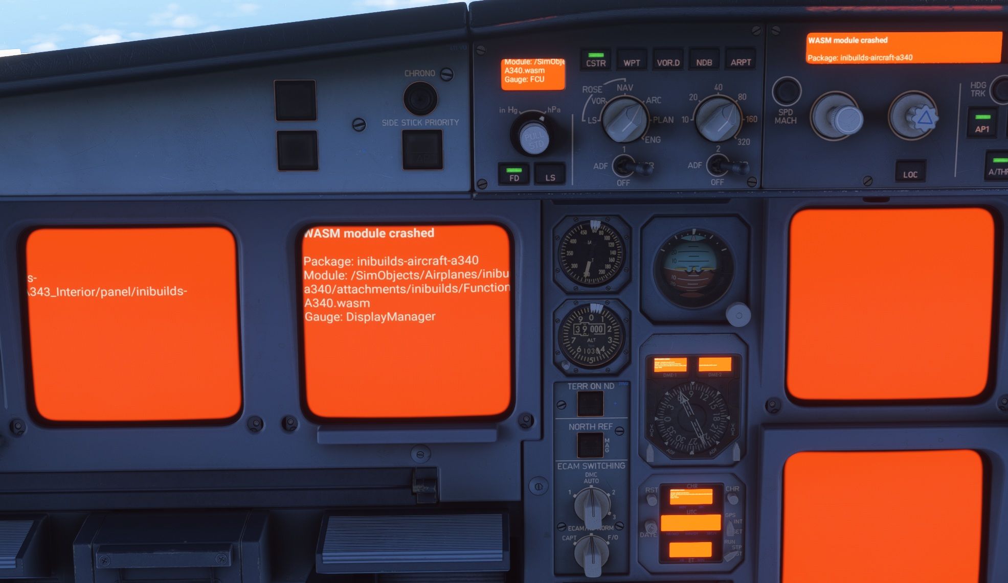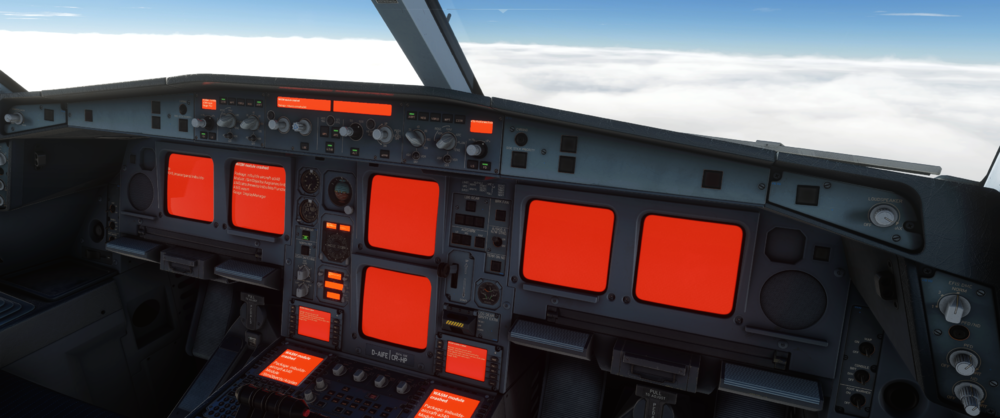 Has anyone had, or have a fix for, the ECAM handing on the 350? I have a problem where after clearing the initial failed system, each secondary failure page immediately gets 'ticked' off without giving me time to run the procedure correctly. It subsequently speeds through the ECAM procedure until it gets to the status page.
