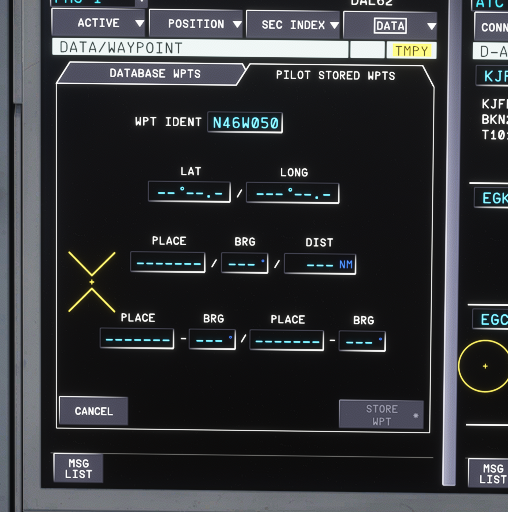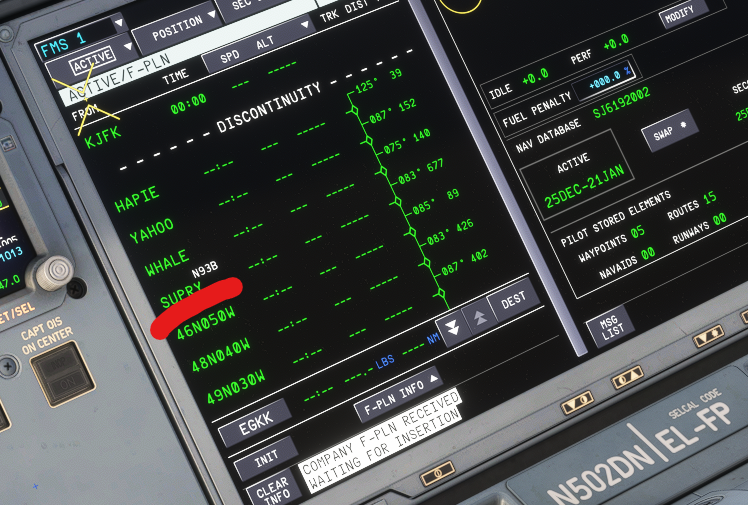 Since release I've been having this problem. I cannot enter AIRINC fixes on the MCDU. Entering it like the route on simbrief makes nonsensical "PD" points that draw to nowhere. The AIRINC format is not recognized, nor is entering them as their coordinates working. Inexplicably when I use simbrief import the MCDU suddenly decides it wants to recognize these fixes. This is the image with the red marking just to show this was after simbrief import. None of this is making any sense to me and I haven't gotten an answer out of anybody about it. What is the correct format to make these work? Or are we any closer to getting a resolution for the fact that these fixes cannot be entered? Route: KJFK DCT HAPIE DCT YAHOO DCT WHALE N93B SUPRY DCT 46N050W 48N040W 49N030W 50N020W DCT SOMAX DCT ATSUR DCT LULOX DCT SIDDI DCT DAWLY DCT ELRIP DCT OTMET OTME1G EGKK