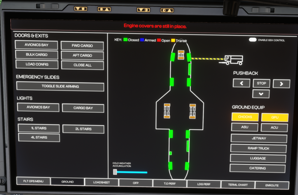 I can not find any button about the engine covers in the OIS, clicking the covers outside the aircraft doesn't work either.