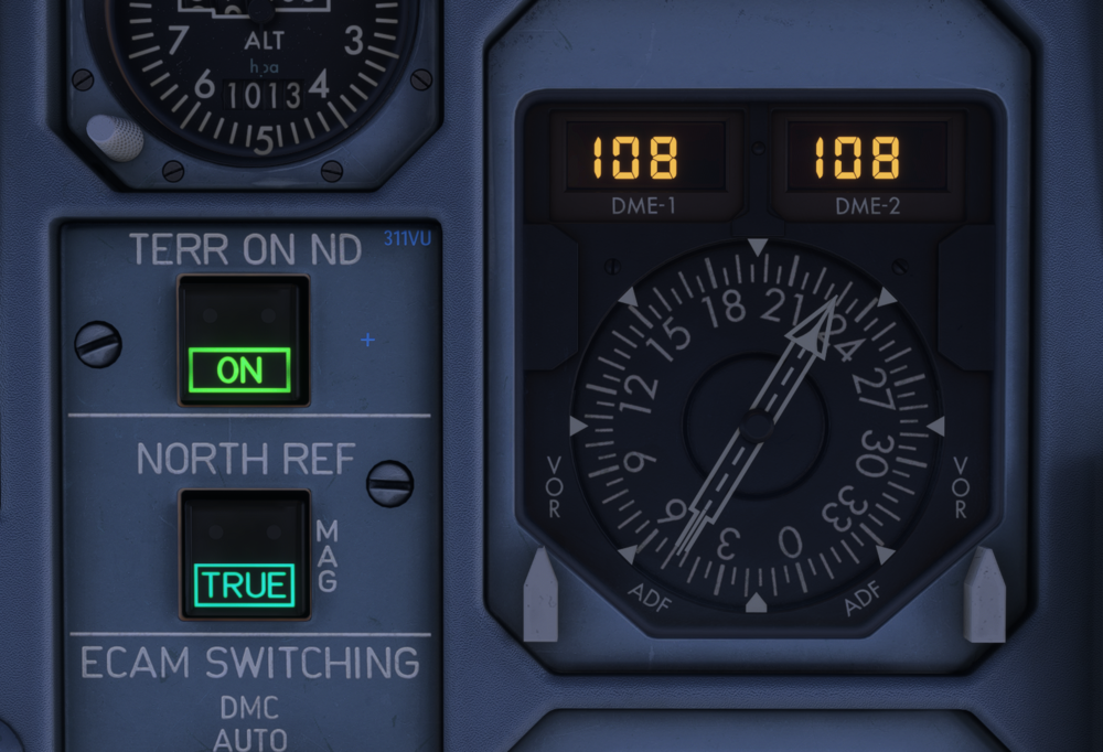 Hello all, I noticed that switching the north ref to "true" doesnยดt effect the DDRMI (right next to the button). However, as seen below, the switching seems to affect the DDRMI in the real aircraft. The displayed courses slighty move in the same way as they do on the ND. Would be great to have that effect added ๐