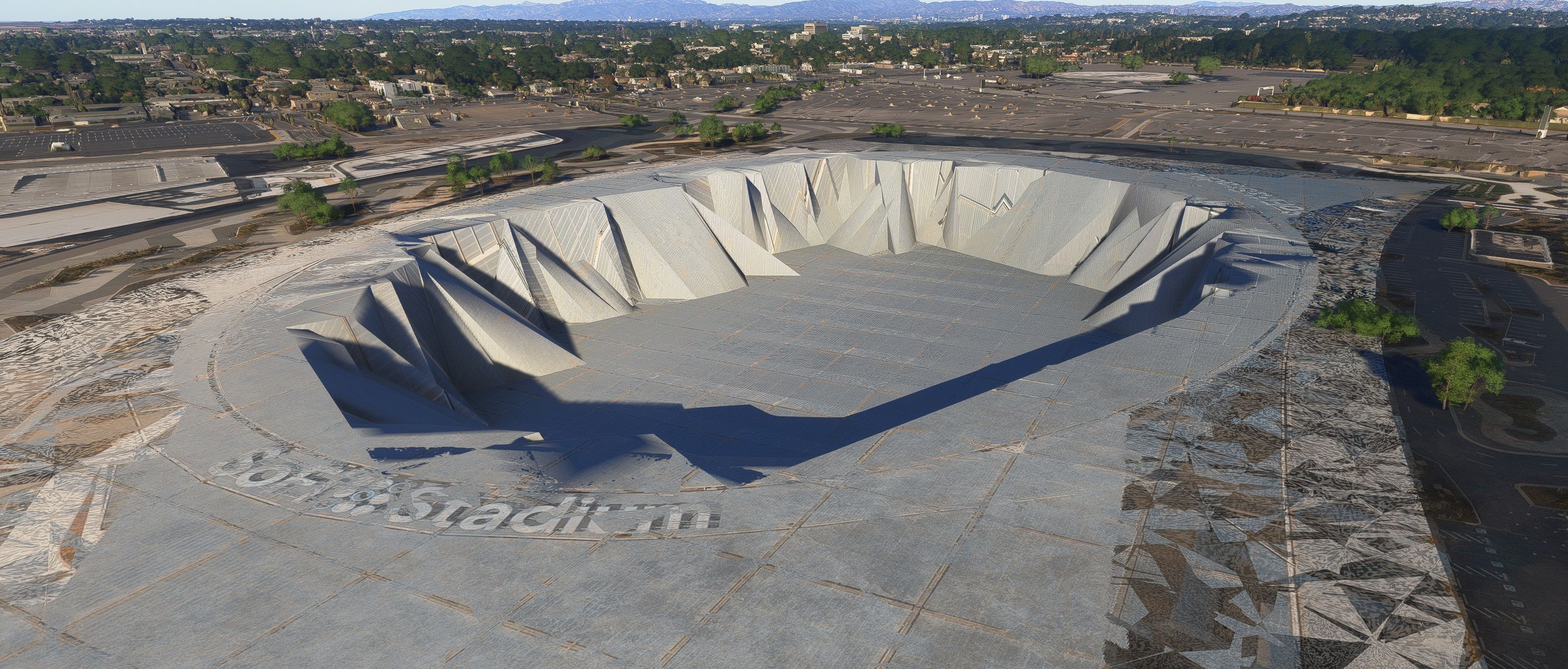 Doing some more testing and the following screenshot is of SoFi stadium with KLAX Enhanced POIs disabled (cars & people enabled), SS3D Vol 1 (Los Angeles & Sofi Stadium disabled) and CU 13 installed.