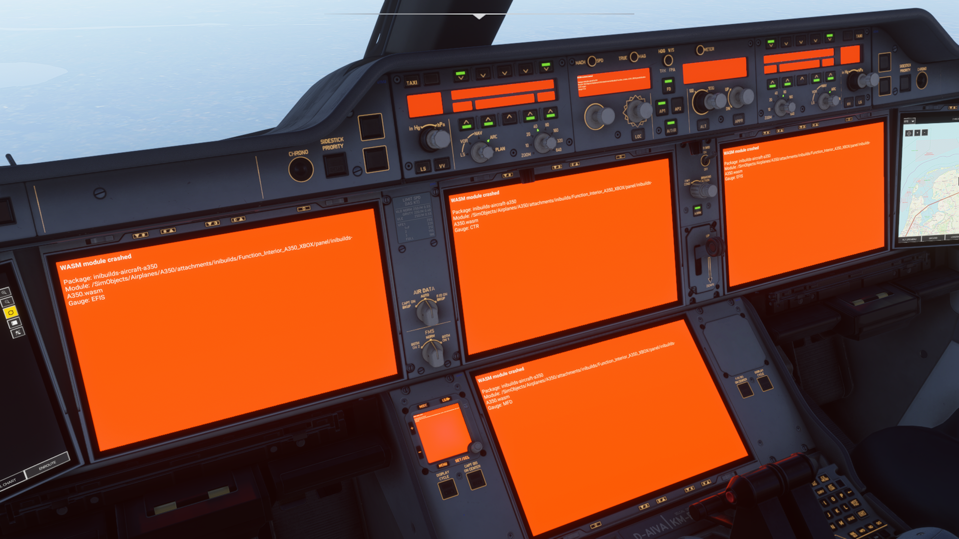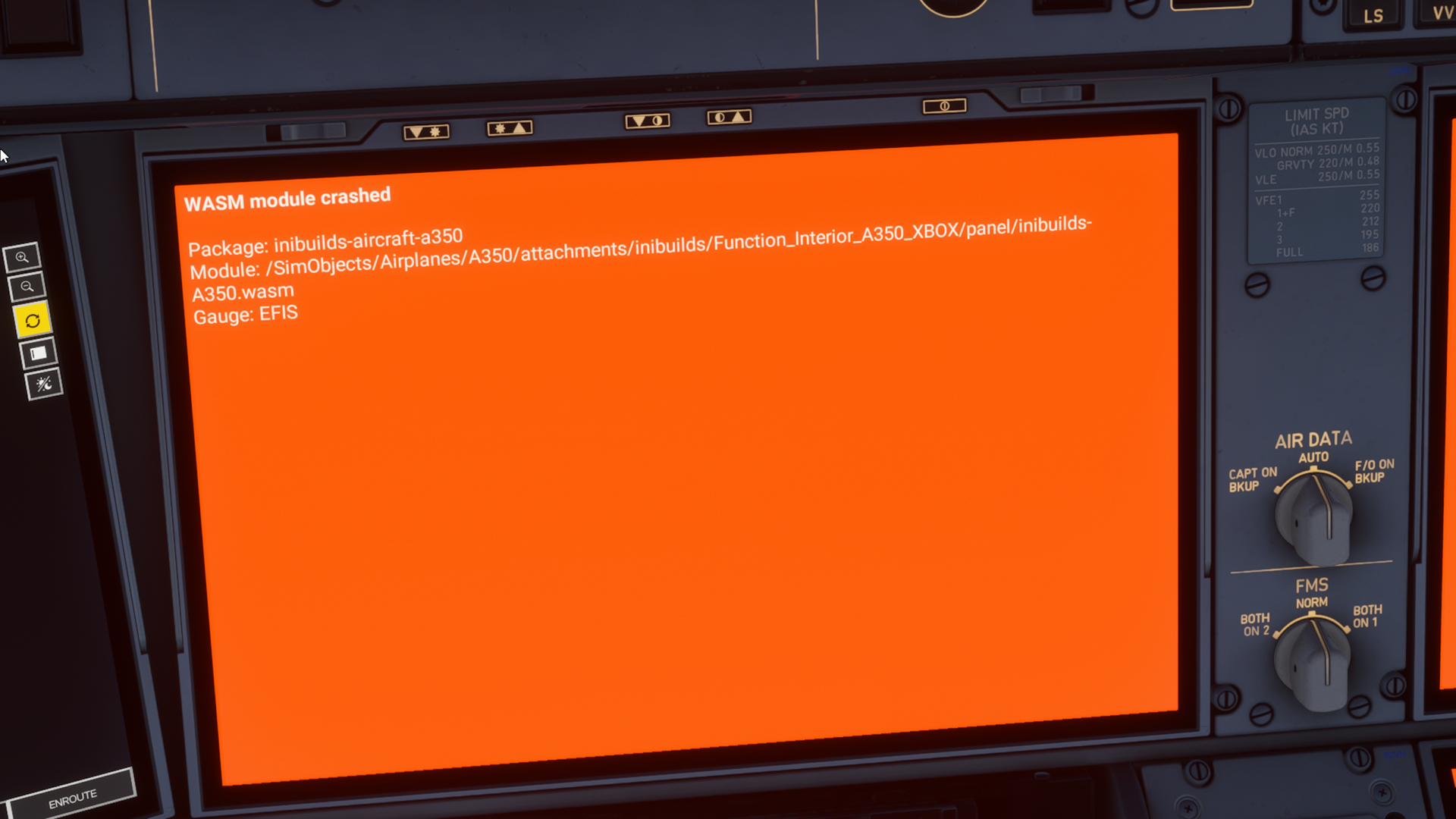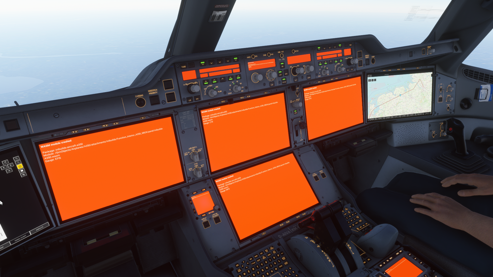 Aircraft: A350-1000 no cabin Simulatior:FS2024 Version:v1.2.1 via iniManager Navdata Method: NAVIGRAPH WASM Error: WASM: Error during MFD_gauge_update execution. Error code : 0xc0000005 WASM: Module vfs://inibuilds-aircraft-a350/SimObjects/Airplanes/A350/attachments/inibuilds/Function_Interior_A350/panel/inibuilds-A350.wasm is now dirty Specs: Intel Core i7-7700k @ 4.20Ghz NVIDIA GeForce GTX 1060 3GB Installed ram: 16 GB Action triggering crash? Similar to others here. Destination runway change entered in flight plan. During flight called by ATC (beyondatc) after having previously had set another runway. 1770393810.bin