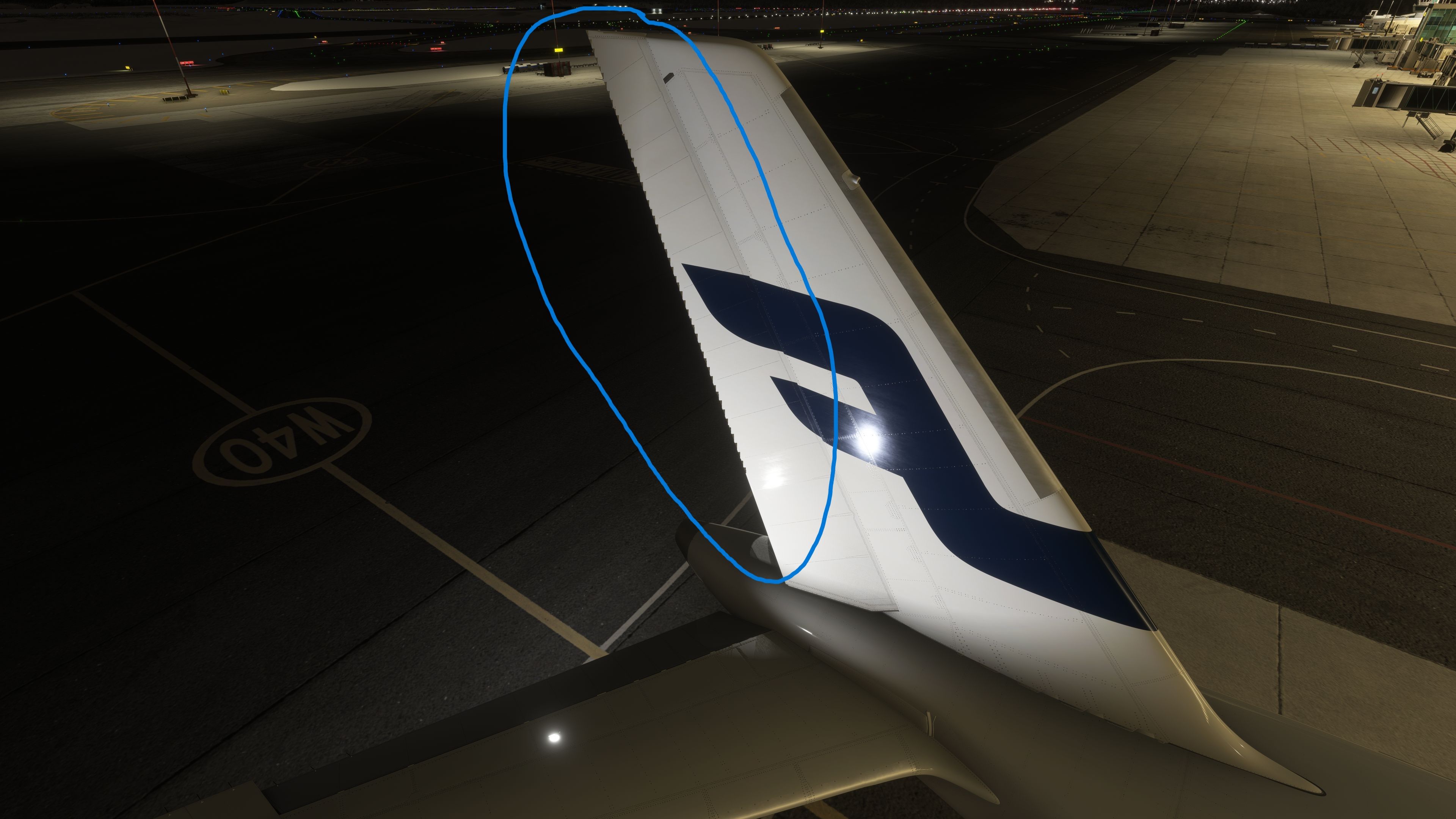 Hi, attached some tail screenshots and a cockpit one. I apologize but a video was too big to be attached. I tried. Anyway, you can see the jagged edges visible only at night with logo light on. There are artifacts also above the cockpit with the torchlight on. I have to correct myself since on the A300 there is some minor problem of the same nature on the tail and the cockpit too. The A340 is perfect, no issues at all. I run MSFS24 in 4k with TAA and ULTRA settings, full screen. These kind of artifacts happen on the edges of the 3d model when under direct lighting, for example when using the torchlight in cockpit, and in AMD RX9000 video cards. New drivers helped to solve the issue on others planes but is still present on the A350 (and A300). Hope this help and thanks for your support. Cpt Dart