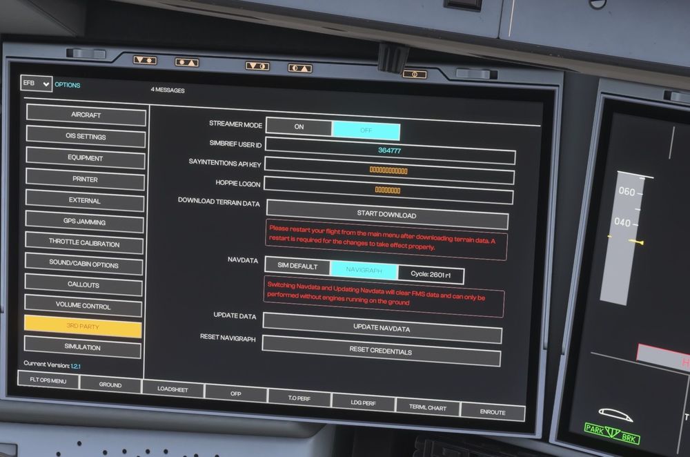 Also Airport Navigation (ANF) is still not working and not possible to download terrain data or update navdata from EFB