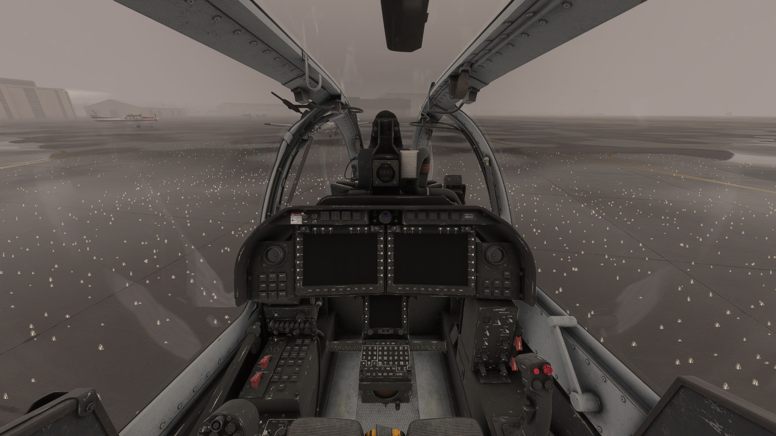 Bug 1: Glass in cockpit doesn't show rain drops at all. Screen grab below. Unless I've turned off a setting somewhere. It shows on other aircraft. Bug 2: When first going to the MFD Map (Say at an airport) It shows a really zoomed in view of the map. Showing taxi lanes, buildings etc. Also the Zoom amount on the left says 4. But if you then go to Zoom the map in and out, the closest you can get is 2 then 4 then 8 etc...you can never get it back to the close in View you started with. 2 zoom is still far out. Questions; Just wondered if some odd things are how they should be, like: 1: To fly in a straight line I need a constant boot full of Right rudder. Otherwise the heli flies at a constant left pointing angle. A little to get started I imagined but not this much constantly. Is this how it should be? This isn't needed with the Hunter or other heli's as much. 2: This one I need to check more. ( I might have pressed something like reArming inbetween) But the dotted line showing the route to the target sometimes disappears after taking out the first target. I just get the circle highlighted but no line. Is this normal? 3: Collective seems to have all it's sensitivity at the very top 80 percent and up. I feel it needs to have this area kick in around 60. 4: I absolutely love the sounds on the Helicopter, great job! Also I can hear the missions being loaded but when getting close to a Target, if they're saying anything like " Target five miles out" or anything else like the one in the Hunter does, I can't hear it. Is it there? Or is it very quite and drowned out by the engines? Thanks