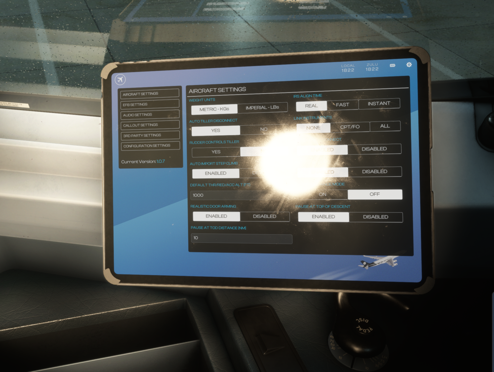 Hi, for the EFB you can control the lighting in the Sound/Cabin Options section(See Image Below). For the FA Panels in the 350 I just have one of the custom camera key binds set to transition the camera from the flight deck to the FA Panel outside the L1 Door. -