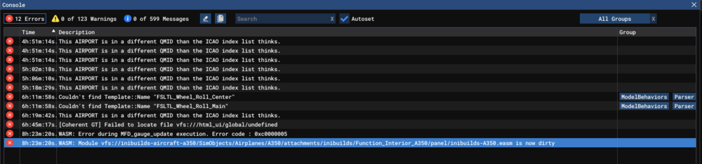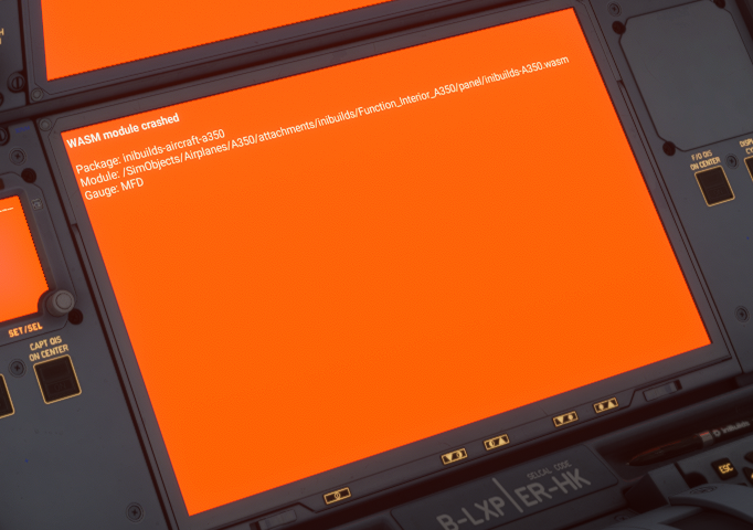WASM ERROR: WASM: Module vfs://inibuilds-aircraft-a350/SimObjects/Airplanes/A350/attachments/inibuilds/Function_Interior_A350/panel/inibuilds-A350.wasm is now dirty Aircraft: A350-900 Simulator: FS2024 Version: v1.2.1 from Ini Store Navdata Method: NAVIGRAPH (full version) OFP attached Error WASM : WASM: Module vfs://inibuilds-aircraft-a350/SimObjects/Airplanes/A350/attachments/inibuilds/Function_Interior_A350/panel/inibuilds-A350.wasm is now dirty Esp: AMD Ryzen 5 5500 (3.60 GHz), RTX 4060 8GB and 32GB Ram File: 1771811586.bin I tried to enter the airport approach information, I selected the runway and when I tried to select the approach type in the appr section, the screen turned orange. MSFSReport.txt 1771811586.bin KBOSMMMX_PDF_1771796380.pdf