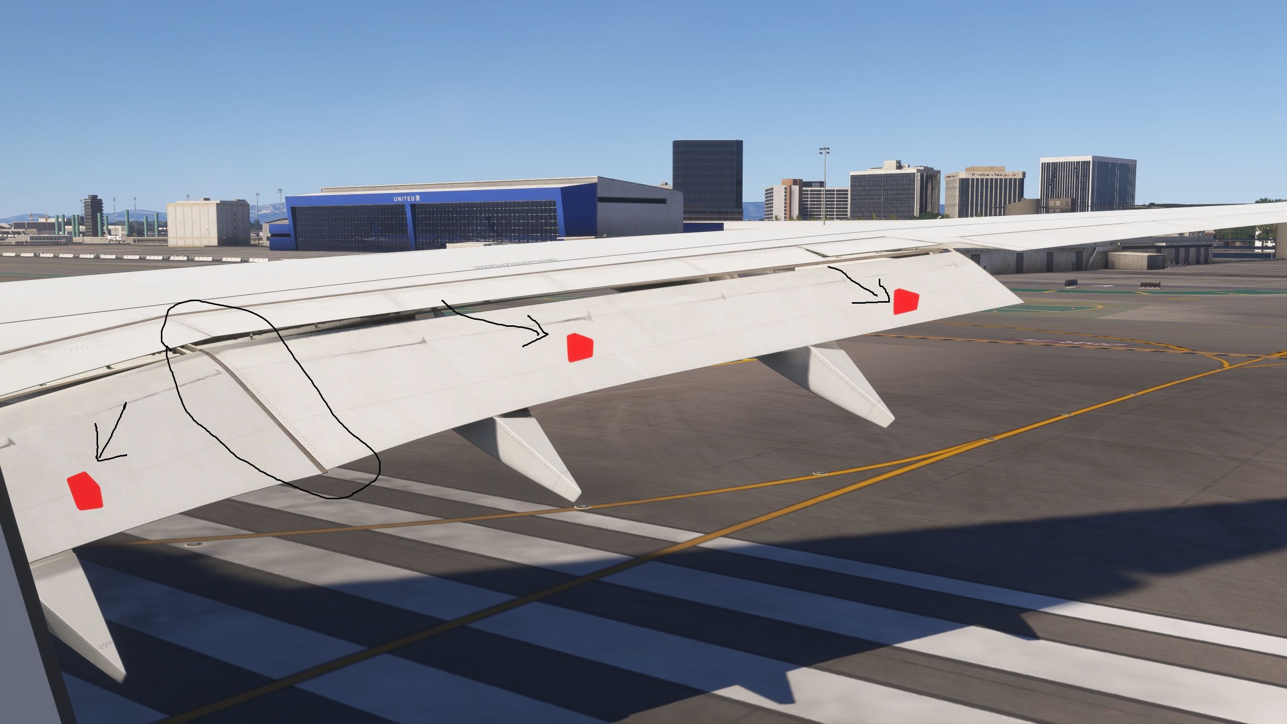 flap actuator pylon tip paint texture error flaps are uneven and the and gap between flap panels missing