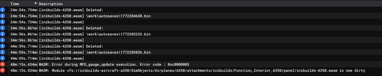 Inibuilds A350 Master WASM Crash Thread v1.2.1 FS24