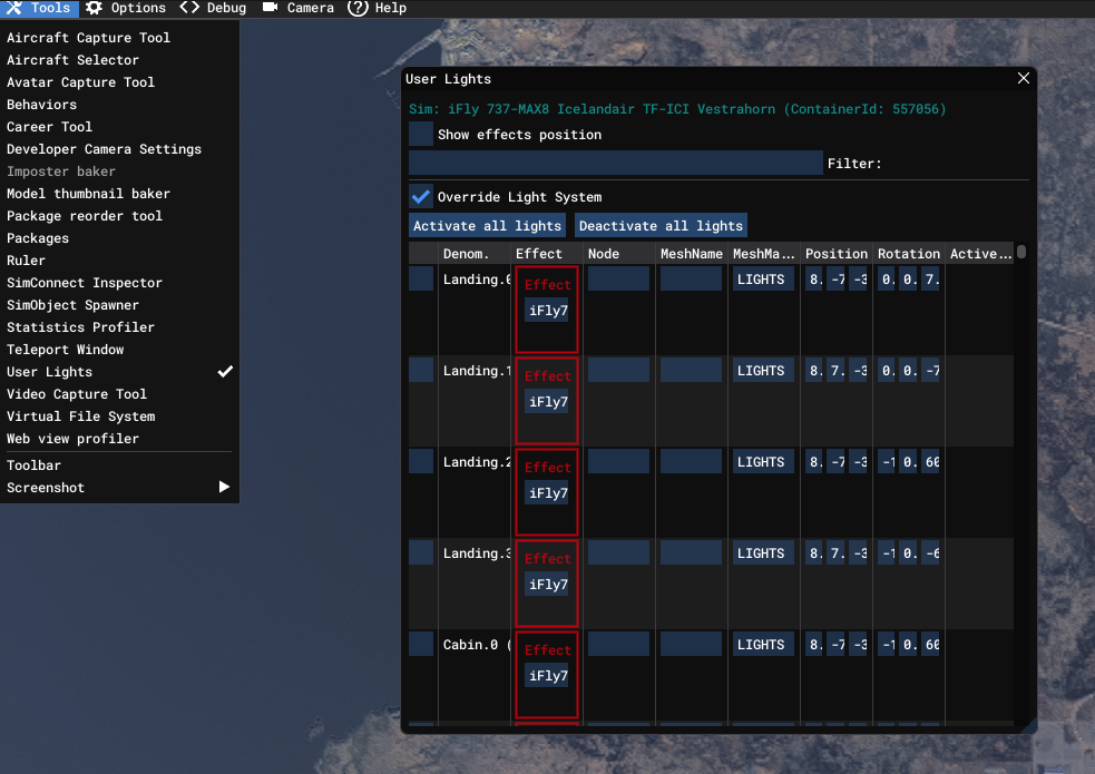 Next time you are in sim check and see if this setting has enabled itself via: Settings > Advanced Settings > Enable Dev Mode This setting routinely enables itself and proceeds to mess up my lighting, let me know if this helps.