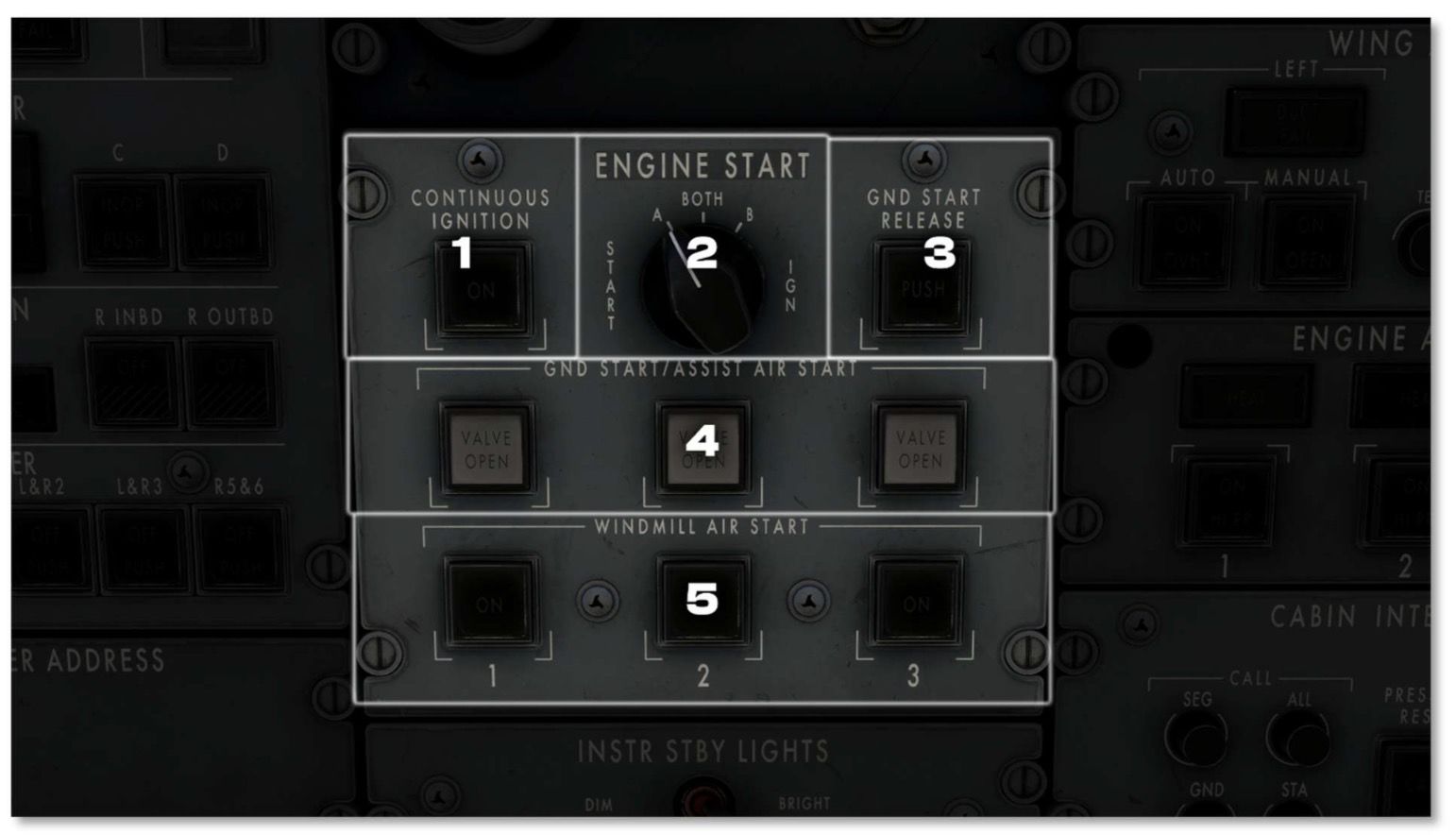 Hm, If you unlatch APU BLEED AIR S/O does air pressure drop on all PSIG gauges? (Checking that actually works) Separately with everything set normally, when you click on GND START does the switch illuminate green and stay on or does it just unlatch automatically after a second or so?