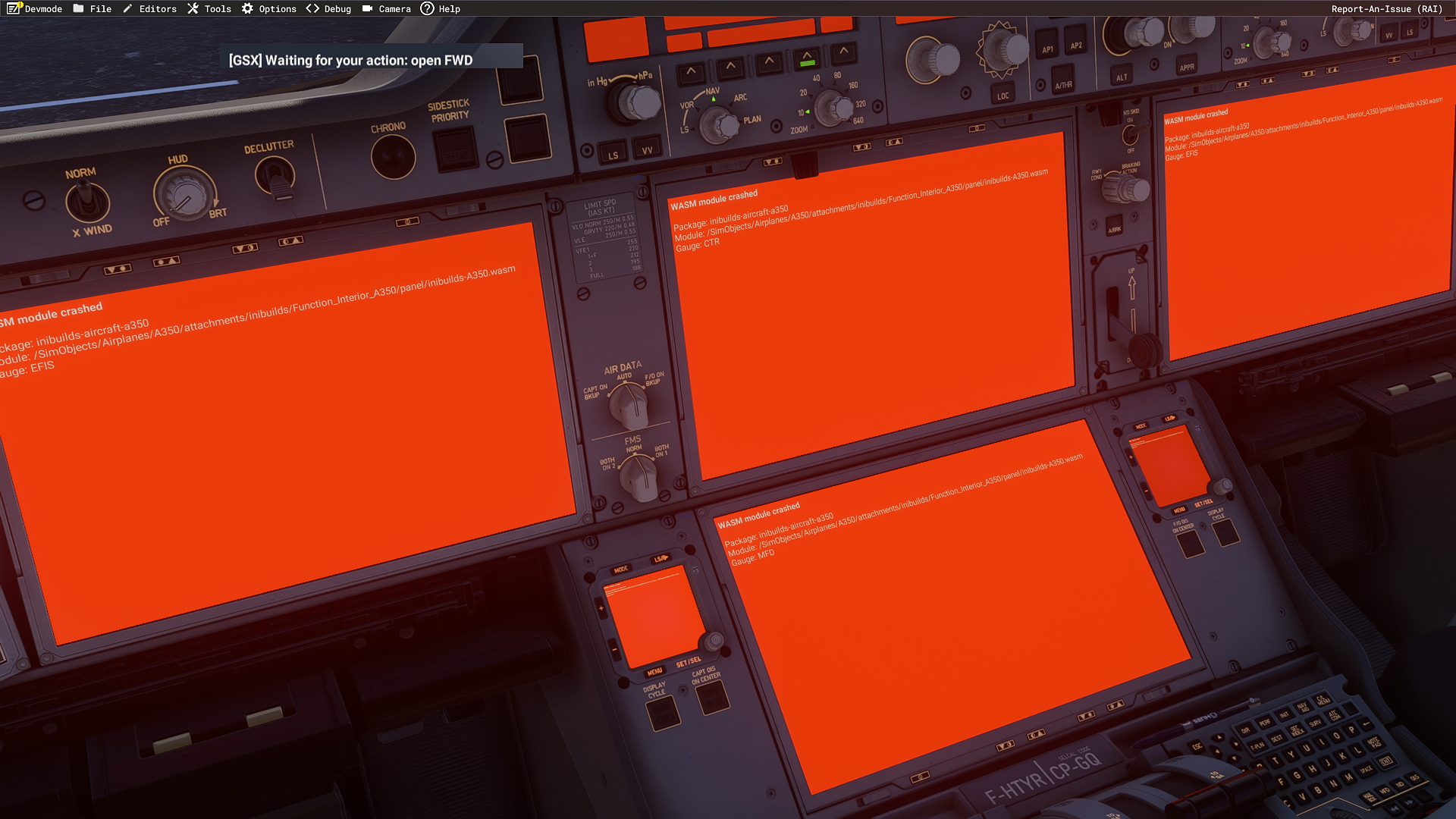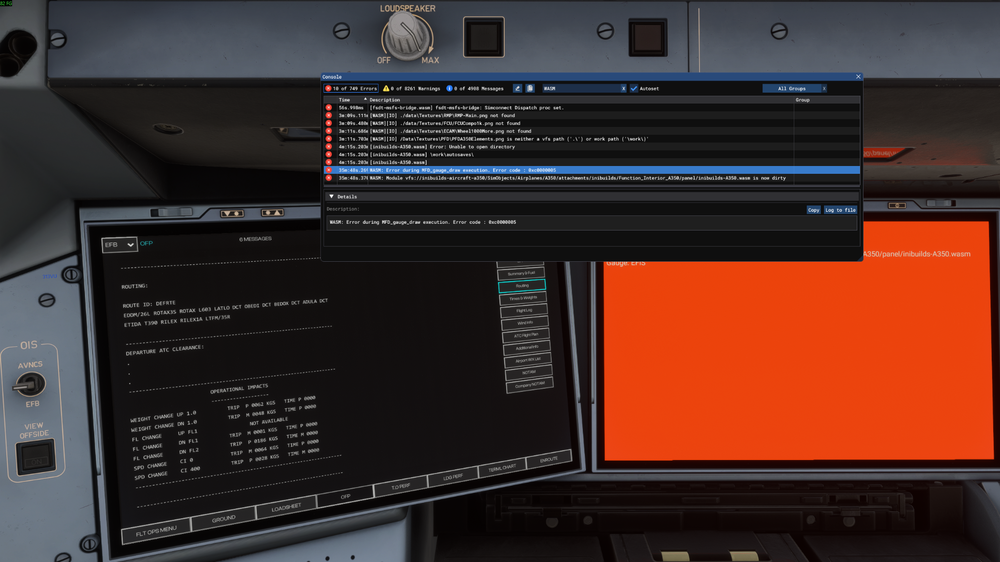 Dear Ini Team, The crash happens when pressing "Insert" after a flight plan request (INIT page) 2 mins after spawnning at gate K58 LFPG Aircraft: A350 / Default Cabin / Simulator: FS2024 Version: 1.2.4 Navdata Method: NAVIGRAPH OFP: LFPG-CYVR WASM Error: WASM: Error during MFD_gauge_update execution. Error code : 0xc0000005 WASM Error: WASM: Module vfs://inibuilds-aircraft-a350/SimObjects/Airplanes/A350/attachments/inibuilds/Function_Interior_A350/panel/inibuilds-A350.wasm is now dirty Specs: Ryzen 7 5800X3d / RTX 4070 / 32gb Ram Autosave File: No .bin due to previous WASM Crach so WASM Folder was clean using your method. Autosave Folder is not available. (see screenshot in attachment) You will find in attachment the file "Description" for the console error and the file for the Flight Plan. I hope you have all the information you need. Please let me know if you need any additional details. Thank you in advance for your help. Best regards,Description.txtLFPGCYVR_PDF_1776192970.f64d8a57.pdf