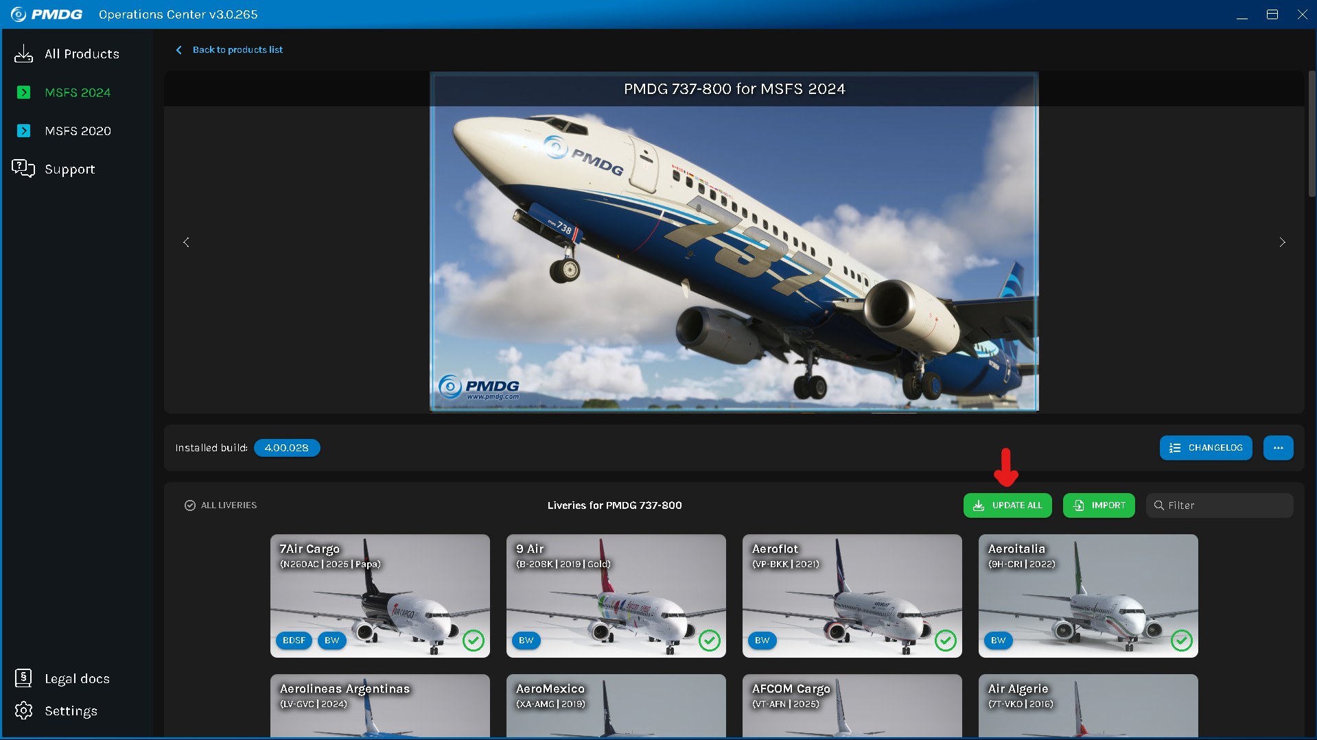 I would like to suggest an option to download/update all or multiple available liveries from the liveries section. At the moment, you would have to go through each livery available and 1. select the download/update icon for each livery seperatley and then 2. accept the terms and conditions for each livery seperatley (which seem to say the same thing each) and then as an additional note 3. once an option is selected, the button would change to "updating" or "queued".. which in this case the "updating" shows for the current download, however the "queued" icon longer seems to display - only way to know is to check the downloading list at the top of the app. Would it be feasable to add a check box to select multiple liveries at once and then have a master "download/update selected" button? I have added an image as an example from PMDG OCv3 of an update all... If its of importance, I'm running inimanger 2.5.3b after some troubles with the current manager version not starting for me even after troubleshooting, however this issue was also present in the current version also. 1. 2. 3. Example