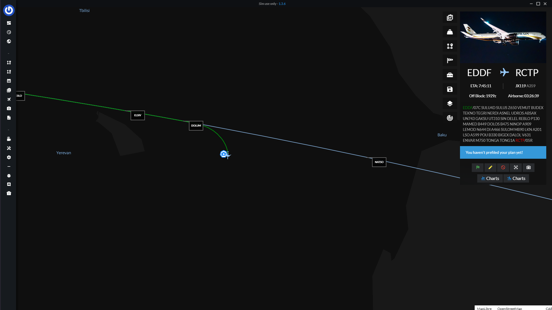 Hi, my first flight with v1.0.4, flying from Honolulu PHNL to Osaka RJBB. On this route there are two consecutive waypoints where one is on W latitude and second is on E longitude. The aircraft correctly continues to fly to the next waypoint (INS6 in my case) when reaching the last W longitude one (INS5) in INS lateral mode but the map can't deal with it. See the attached screenshot.