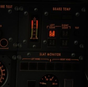 Just loaded the aircraft, so even though the indicators aren't working, it's safe to say that the brakes are at ambient temperature. The first screenshot shows the left forward gear selected. The second screenshot shows what happens when I click the test button. Thank you @IniJamir for looking into it!