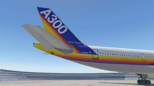 Airbus House Livery for the iniBuilds Airbus A300-600. Airbus operated F-BUAD during the development of the Airbus A300, being the third A300 constructed (MSN 003). It wore a number of liveries, and is shown here with the promotional 'Fly By Wire' titles. The real aircraft was an A300B2 so some differences are present, mainly in the flight deck and engines, and only textures for the GE CF6 engines are included.