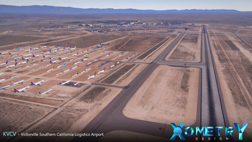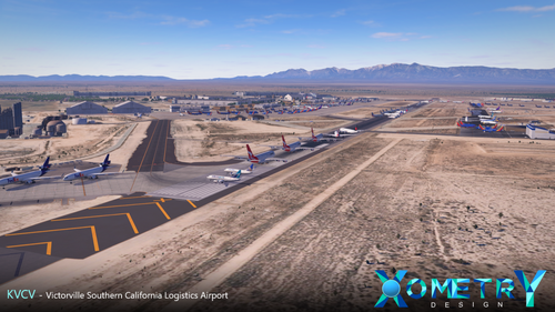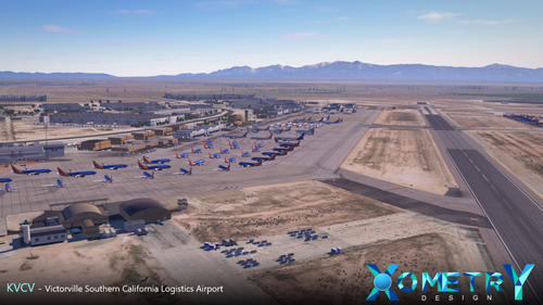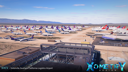 This is a Static Aircraft Extension for the KVCV Victorville Southern California Logistics Airport payware scenery by Xometry.