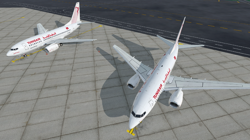 After painting the 70th Anniversary version of this livery, I was asked if I could paint the regular livery, so here you go, here's two of them - TS-IOM & TS-IOR from the Tunisair fleet. Both models include accurately placed artwork, underwing registrations and a flightdeck configurations representative of age and operation, with Reg and SELCAL placarded.