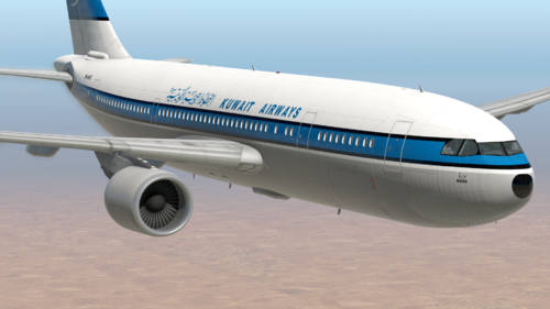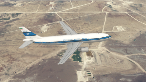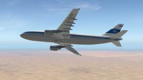 Kuwait Airways 9K-AHG, named "Wara", was an A300C4-600, which is a rare variant of the A300-600 that can be converted to a freighter. In fact, Kuwait Airways did use this aircraft as a freighter for some time, and some photos of it can be found online bearing the word "CARGO" in red. Compared to the A300-600, the A300C4-600 has a large freight door on the port side of the aircraft as well as no wing-end fences. This livery has the freight door drawn on the port side. I could not cleanly remove the wing-end fences, so they remain in there.
