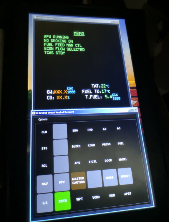 Hi, I just made a X-keypad config for A310, I starting by making only the ECAM control panel, since it's very awkward to use in cockpit view, but ended up some more function I likely to use as well. For my purpose, I use it with a 6*5 virtual device on a 7" touch screen, under the left ECAM. Normally I use this touch screen for FMS/MCDU, but since I can't do that with ini A310, I ended up with this... ECAM buttons will lit up when it should, but not half part but whole, as that's the only way I know how to do it... as well as ND buttons and Master Caution. I keeped only a few buttons as I can only use less than 32 buttons for free version of X-Keypad, also the space is limited. Some other awkward buttons I ended up on my home made MCP +G27's shifter, so It's not there, it's very easy to config yourself if you needed. Only tested with A310_P, but should work with all other variant, just rename the csv file name and put in different aircraft's folder. X-Keys_A310_P.csv