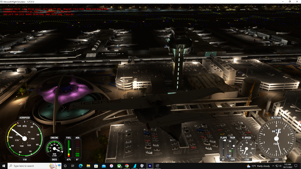 11. In the sim the red colored lights are not appearing on top of the control tower and theme building, they are present in the real world.