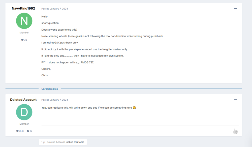 Thank you for the quick response. Good to know that I am not crazy.......😉 FYI: I do not use force feedback yoke or joystick @Nico - Gumby: Could you take a look at it. Thanks, Chris -