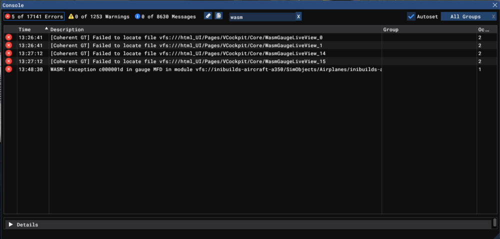 WASM Error: WASM: Exception c000001d in gauge MFD in module vfs://inibuilds-aircraft-a350/SimObjects/Airplanes/inibuilds-aircraft-a350-900/panel/inibuilds-A350.wasm