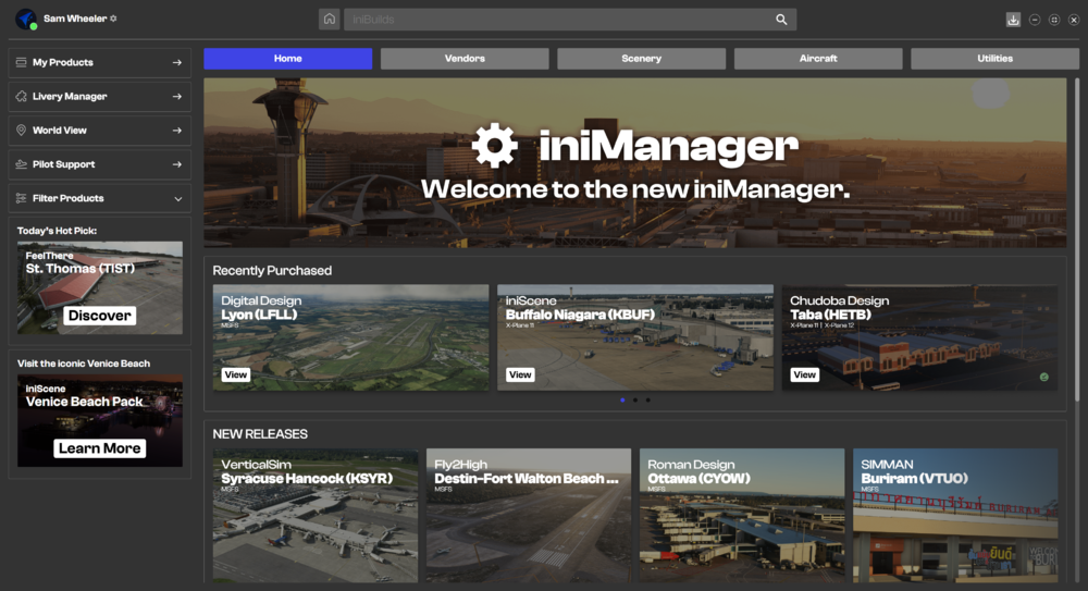 Today, we're excited to release a major update to the iniManager: Version 2.What's new?This version features a complete redesign of the app, offering a much improved, intuitive way to manage your products from the iniBuilds Store, and interact with your simulators in new ways.New features include: A new way to discover sceneries, called "World view", which allows you to see all of the airports available from the iniBuilds Store on a visual map. In-app purchasing: Purchase and install your products in one place, removing the need to visit the iniBuilds Store in your web browser. You can now purchase all products directly through the iniManager. MSFS liveries installation: You no longer need to visit the iniBuilds Forum to download liveries, the iniManager v2 now features MSFS livery installation directly into the Community folder. Pilot support page: A lightweight tool that puts all of the necessary information needed for your flight at your fingertips, using native SimBrief integration. You can view your OFP, METARs, Flight maps, and ATIS information directly in the iniManager. X-Plane 12 & Prepar3D compatibility: X-Plane 12 is now natively supported, along with Prepar3D (P3D products coming soon). Numerous bugs fixes/improvements DownloadThe iniManager v2 can be downloaded here: inibuilds.com/inimanager