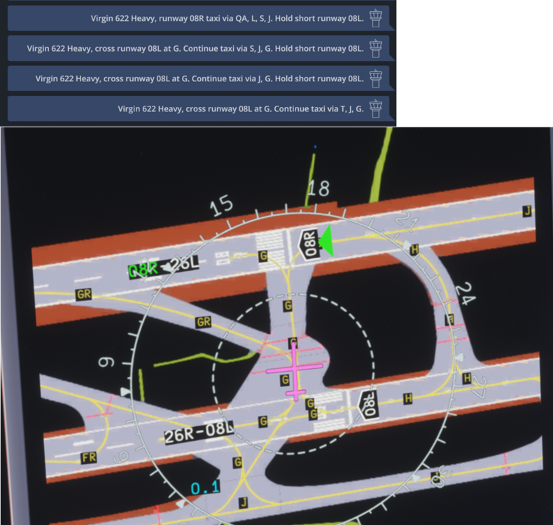 When using BeyondATC to taxi to 08R, I get strange instructions saying to cross 08L at G but to hold short runway 08L. And then it mentions taxiway T even though I haven't used it. Their support says "Prob a scenery issue"
