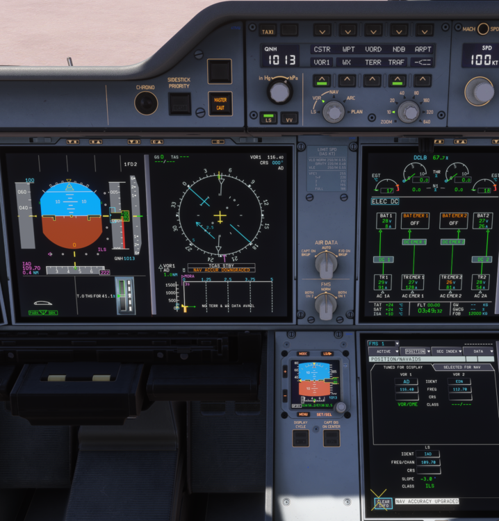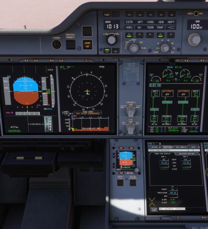5. Hi Eddie.....maybe a breakthrough here. After several reintroductions of files, I have determined that Navigraph files are the problem. First, AIRAC 2510r2 was updated and displaying correctly in the OIS, although the Default/Navigraph/AIRAC bar was flickering when that page opened. Note with Navigraph files installed in CF, no VOR CDI, FREQ or DME on ND, or ILS freq/DME on PFD were showing - see 1st pic below With Files (see pic 2 below) removed from CF - all normal - see 3rd pic below Is Navigraph an issue with the A350? How is that fixed? I'm also thinking that my issue MAY have been caused by updating Navigraph more than once. Could this create a problem? SUGGESTION: In the 3rd Party tab in the OIS, could there be a comparison tab for AIRAC, comparing loaded version with latest available so we'd know whether to update Navigraph for instance
