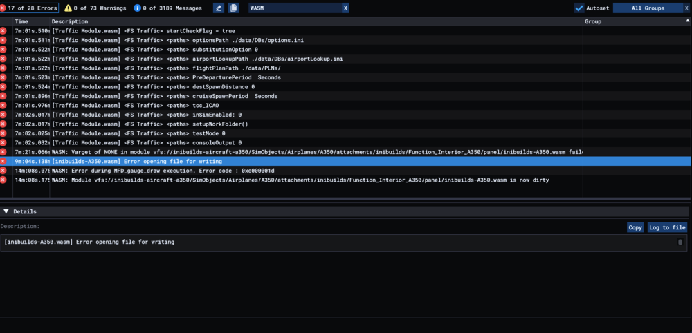 WASM: Module vfs://inibuilds-aircraft-a350/SimObjects/Airplanes/A350/attachments/inibuilds/Function_Interior_A350/panel/inibuilds-A350.wasm is now dirty