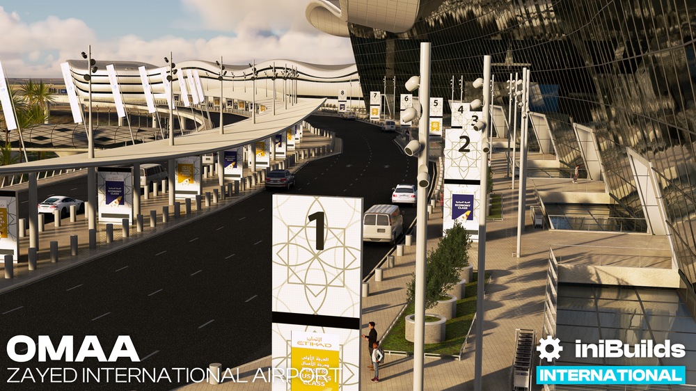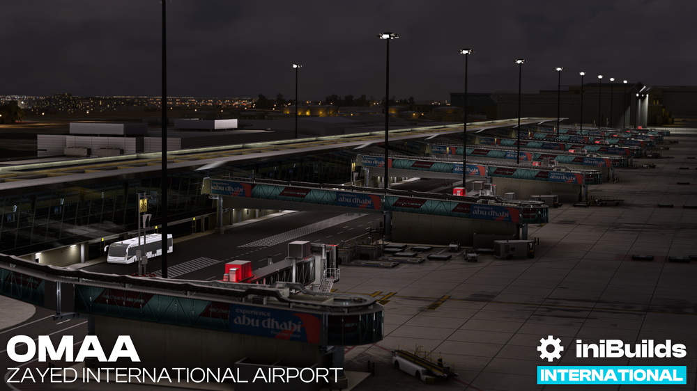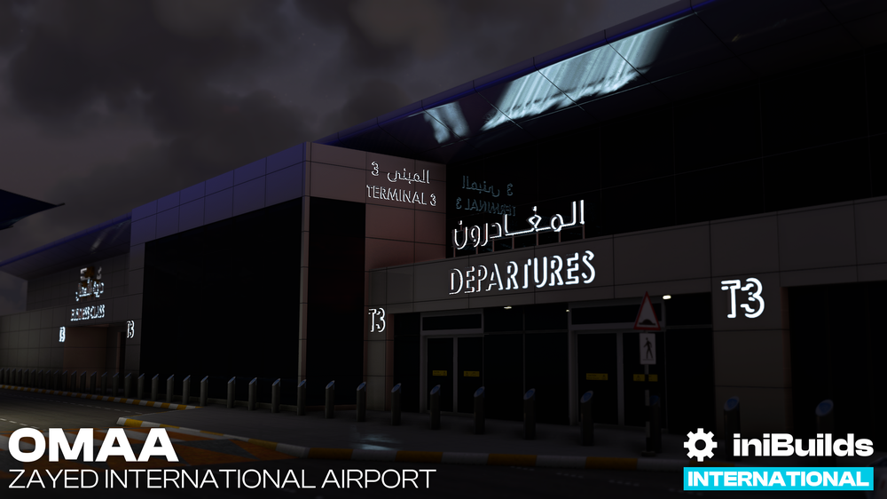 iniBuilds Zayed International Airport (OMAA) 🕌Experience the Capital of the Emirates🕌 The iniBuilds team would like to welcome you to the Capital of the Emirates, Abu Dhabi! A global cultural hub, rich in ancient history, innovative designs and the adrenaline fueled - Yas Island. Zayed International Airport stands as a bustling hub for both local travelers and those journeying from afar. Immerse yourself in the vast terminals and facilities. From the bustling concourses to the hand-crafted interiors, every detail has been carefully designed to enhance your journey. As a launch weekend special, purchase iniBuilds Dubai and Zayed International together for only £19.99! (excl VAT) - https://inib.uk/omaa-omdb-bundle Or, you can purchase iniBuilds Zayed International Airport for £14.99 (excl.VAT) here - https://inib.uk/omaa-msfs Explore the seamless integration of modern architecture and traditional Arabian hospitality as you navigate through the airport's expansive airside and landside areas. With full GSX compatibility and a host of unique features. Embark on journeys to a myriad of destinations from Abu Dhabi, with renowned airlines such as Etihad Airways, Air France, British Airways & Wizz Air Abu Dhabi, whisking you away to exotic locales across the globe. Whether it's European capitals, the cultural treasures of Cairo, or the idyllic beaches of the Maldives, the possibilities are endless. Scenery Features Hand-made ground textures with crisp, bespoke texture sets (Runways, aprons, paths, roads) True-to-life airport landside recreation with custom ground decals, signposts, vegetation, parking barriers and more Accurately modelled and positioned dynamic airport lighting Highly detailed models of all airport buildings, objects and surroundings Up to date airport layout reflecting the current, real-world location Custom built jetways with realistic variations using PBR texturing and animations Official GSX Profile included in scenery folder Level of Detail (LOD) optimisation for every model to encourage the best performance possible Use of the latest MSFS SDK features to allow for the best optimisation and performance possible Full iniManager compatibility to configure your scenery for the best possible performance for your system Bespoke taxi signage as it is in the real world Watch The Trailer! Thank you for all of the support, we hope you enjoy Abu Dhabi's Zayed International Airport (OMAA), we've got lots of fun stuff in store for you this year, so stay tuned! iniBuilds Team ❤️