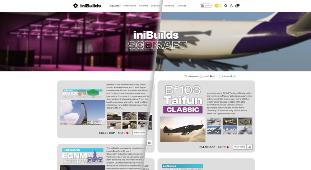 We'd like to formally welcome you to the brand new iniBuilds Store! The team have been hard at work developing an improved store with some awesome new features, so this post will walk you through some of them and show you what's new! 🥳 🏡Home Page 🏡 Firstly, from the get-go, you'll notice a difference, the addition of the 'Trending Products' section, a brand new layout, a revised top navigation menu, all of these things will get you to the product you're after in no time! 💪 Here you'll find plenty of products that the community are loving at the moment, from some of iniBuilds' latest releases, to some recently updated, well known and loved sceneries as well! You'll also notice that each product now has specific identifiers to them, from MSFS, X-Plane and even P3D, every product will have one of three circles next to the name to help you quickly identify the product simulator. 👀 As you can see, you have the title at the top of each card, then the developer and then that simulator identifier! The Simulators are separated into 3 categories as mentioned above, you can quickly and easily see what these are from the following idents - The last thing to notice on the home page (and all pages for that matter!) is the new currency selector! This new tool allows you to quickly and easily see the projected equivalent of what you'll be charged for each product without having to do so yourself! This is something we can grow as time goes on, so if you have any specific currencies you'd love to see on the store, shoot one of the staff members a message and we'll see what we can do! 💱 🛒Product Pages🛒 Next up, we have the new product pages! These are designed to give you all of the relevant information you need to decide whether to purchase a product! We start with the clear titles, showing the name of the product and reinforcing the simulator it is intended for. If that's all you need to know, click buy it now, or keep shopping around with the 'Add to Cart' feature. If you still need to find out more, keep scrolling! There's a clear product description, followed by some vital key features highlighting the products notable areas, accompanied by some of the product preview images. If the product has enough, you'll be able to click a link to see the full features list. 📝 Following on from there, we have the full product gallery, showcasing some of what you can expect from every product you could ever want to purchase from the store! Click on these to scroll through, once you're done, simply hit the 'X' and that's it! If the product has a trailer, you'll see this below the product gallery and will give you a fantastic preview of the product before you buy it. Finally, as a feedback point, we wanted to provide you with some more information regarding each product, namely the version it is currently listed as, therefore, under Product Info and Prerequisites, you'll find a plethora of information relating to each and every product. 🔄 ⚙️iniBuilds Pages⚙️ What would an iniBuilds Store be without iniBuilds specific pages?! We've made it even easier for you to find the latest iniBuilds releases, simply click on iniBuilds, then either "Scenery" or "Aircraft" (depending on what it is you're after!) and the latest release will be at the top of that page! Each product shows the title, a preview image and a short extract from the full description, as well as the previous, you'll also see a price, simulator version and the usual "View More" and "Add to Cart" buttons! Click view more to open the full product page and navigate from there. 🛫Aircraft and Scenery Pages🌍 There are two sections which we had a lot of feedback to improve, namely the Aircraft and Scenery areas. Starting with Aircraft, you'll see that we've added filtering to this page to enable a quick and easy search through, both simulator and type of aircraft can be filtered through without ever leaving this page. You'll find a host of different products matching the criteria you enter. Next up, we've separated scenery into regions! Simply click the region you'd like to explore, set the simulator you want to search for and away you go, it's that easy. We've added Africa, Asia, Europe, North America, Oceania & South America as regions for you to browse! 🌎 👨👩👦Vendor Page👨👩👦 Coming to the end of our walkthrough, we've got the vendor list, displaying all of our store vendors with their names, logos and the products they have on offer! Easily identify the developer whose products you want to look at, click the card, and you'll be taken to a page full of their products! 🛍️ Which brings us nicely to the end of this walkthrough! There's plenty of other nifty features we've added, but then you won't be able to see them at work first hand! Nothing will change in regards to accounts, all previous purchases are still tied to your current accounts, however if you do encounter any issues, please do message a member of the team who will be happy to help. 🖥️ Once again, we're so excited to bring this new site to you and hope that they are all welcome changes and enable you to navigate our store with ease and promote a stress free experience, feedback is always welcome, so please do let us know if there's anything you'd like changed, added or removed and we'll take a look at all points! We've got an exciting end of March coming up, so keep an eye out on our socials, explore the new site and keep flying! 🛫 Kind regards, iniBuilds Team ❤️