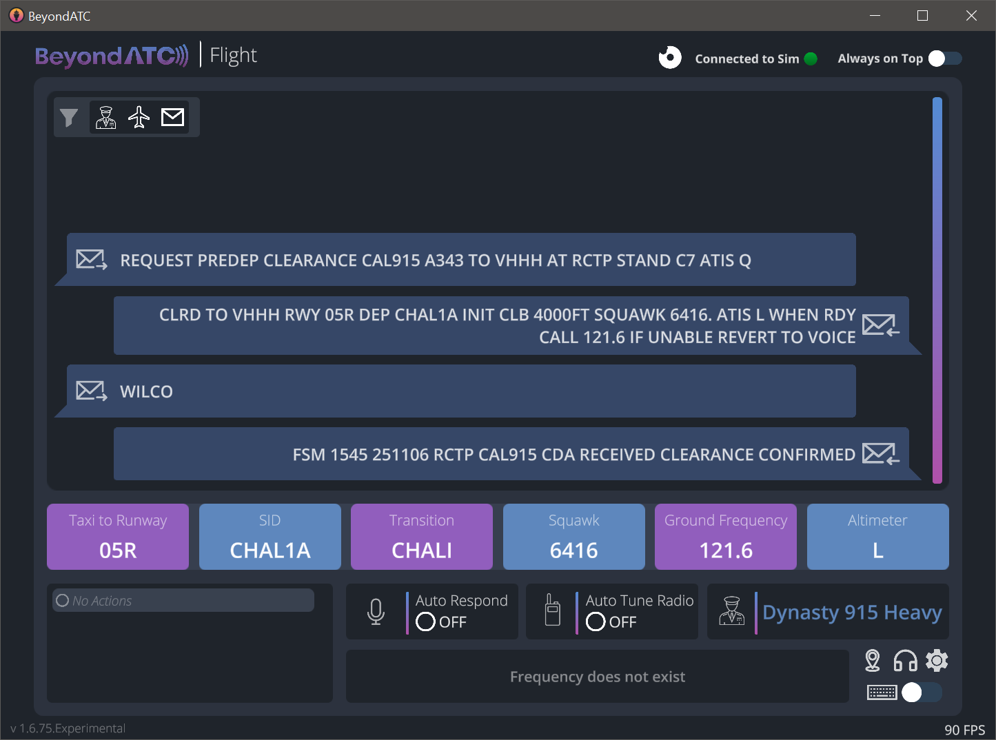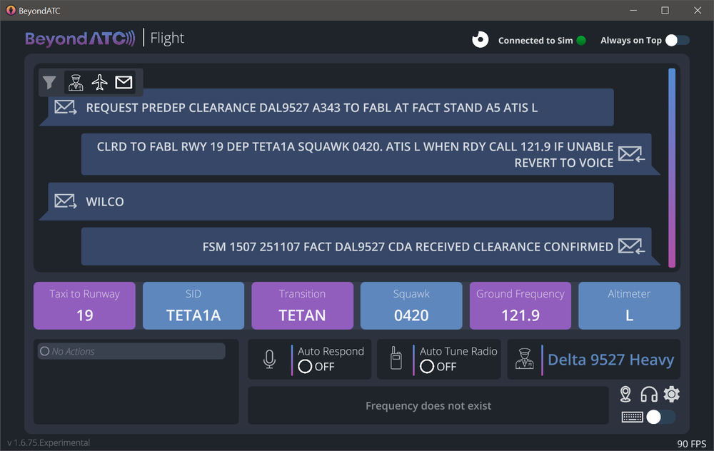Hey @Donald Douglas There is a slight delay (by design) between when messages are "sent" by BATC vs when they actually show up in the aircraft. In my case it was upto about 30 seconds. However trying your exact same route on 1.0.3 (latest version now), its working my end. If you continue to have issues, perhaps check with BATC Support, along with your log to see if they have additional information. 2025-11-07 23-06-14(1).mp4 Thanks! -
