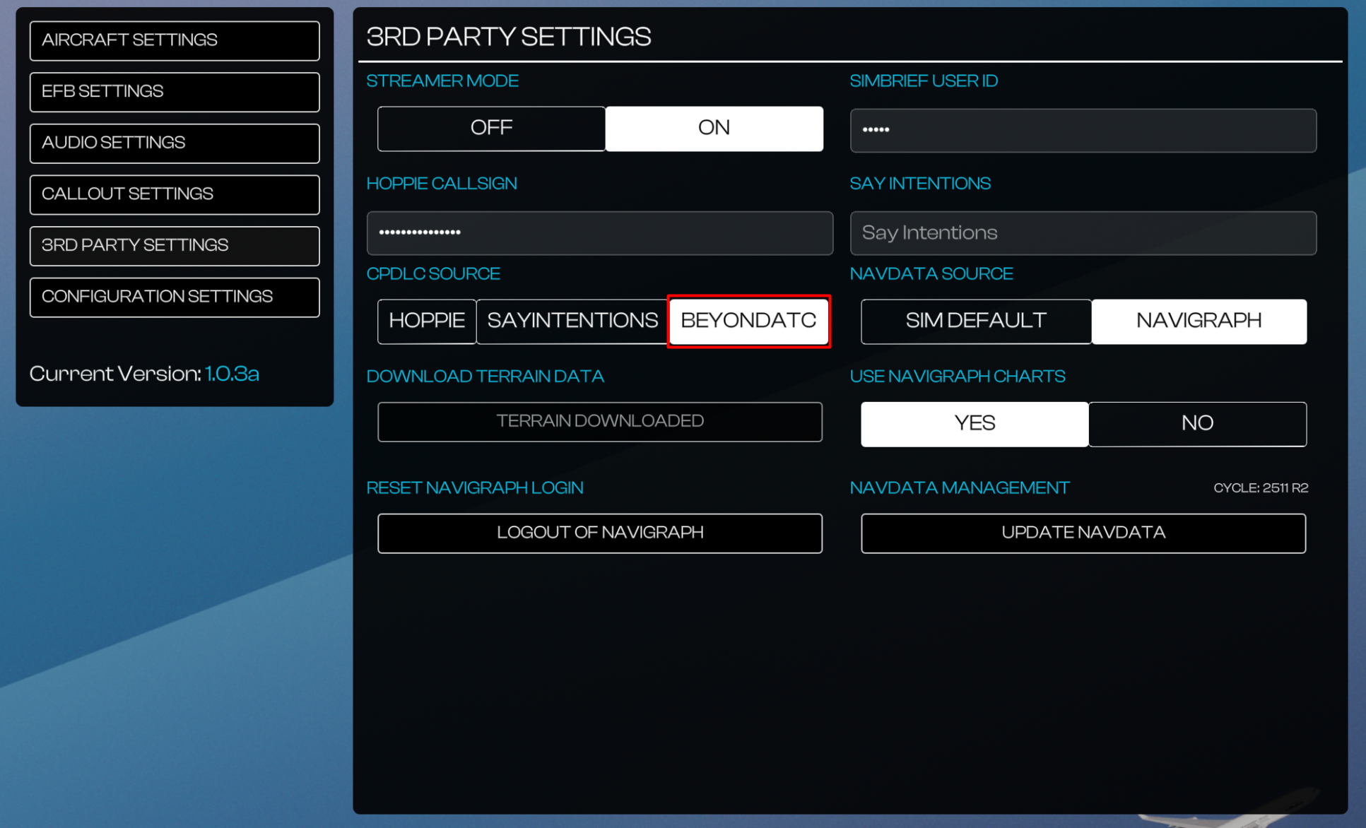 Hi @Donald Douglas/ @MMAACCXX Apologies for delay in response. For BATC, it only supports Pre-Departure Clearance (PDC) via CPDLC currently. Key things to ensure for proper function: You are on BATC Experimental Branch (v1.6.75 Experimental or greater). PDC is not available on the Early Access branch at this time. You have set BEYONDATC as the CPDLC Source on the EFB 3RD PARTY SETTINGS Page. (Click to enlarge image) You have completed your MCDU INIT-A page with information such as FLT NBR and FROM/TO After that, you can request PDC following the guide below: We and a few other testers have confirmed this working since launch, even up to v1.0.2 recently. Thanks! -