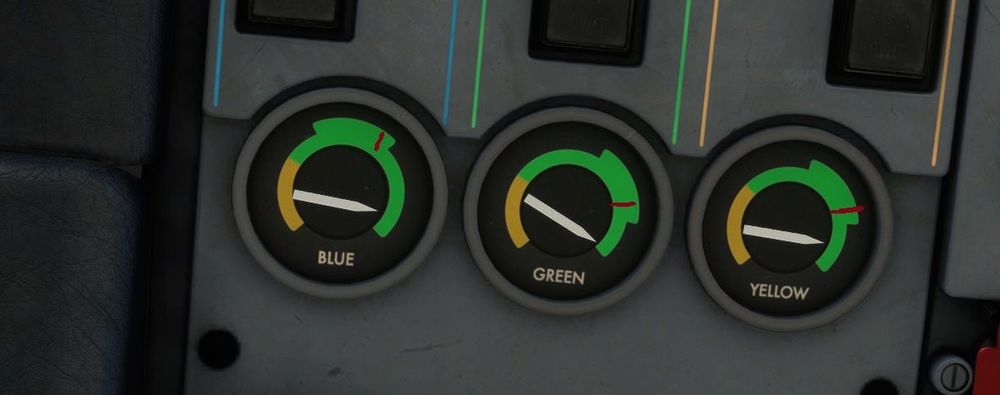 3. Hi! Im back 🙂 On the ground if the captain find the levels like that ( pls see attachment - pic from the sim) im 100% sure that he will call me. The systems are overfilled and we have to bleed all of them to get the levels as i shows on the next picture. For example, pls check the green hyd. If they land in Africa, for example A300 DHL is flying to Lagos and the aircraft stay on ground to long, the temp rise so the overfill valve wich is on the top of the reservoir will open. But after that we need to replace it. We need the parts etc in this place. It can cose the delay or AOG before departure.