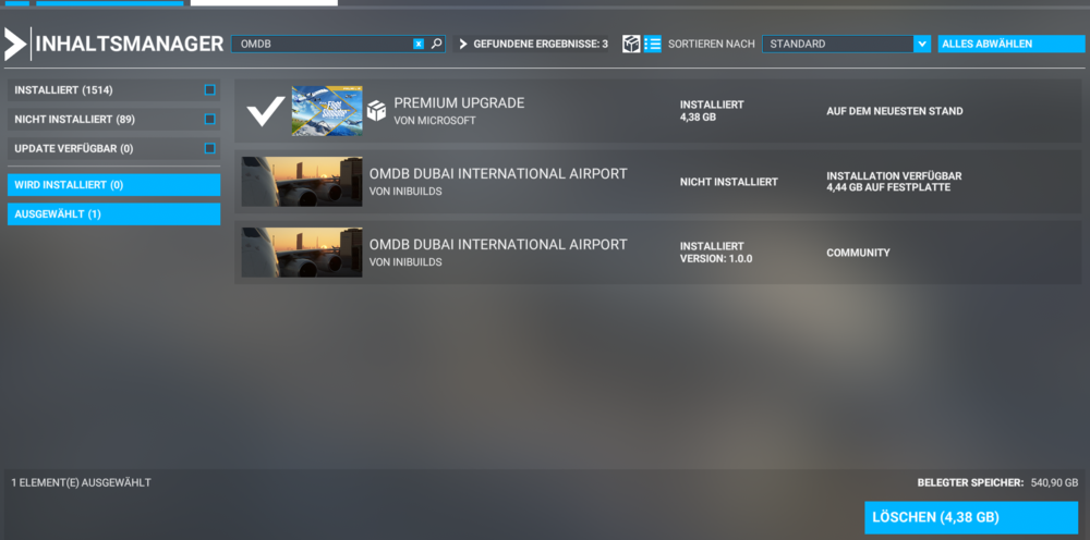 17. Hello, I have the same problem as others in this forum: I see some terminals in Dubai twice. I have seen the advice to uninstall Asobos Dubai from my premium deluxe version to solve this issue but my content manager does not show this airport - it only show the premium deluxe package as one selection, not the airport OMDB / Dubai. The screenshot shows this. (it displays a community and marketplace version because I had an order transfer to the Inibuilds store to better configure the scenery) Does anybody has an advice how to uninstall the Asobo version without uninstalling the other premium deluxe content?