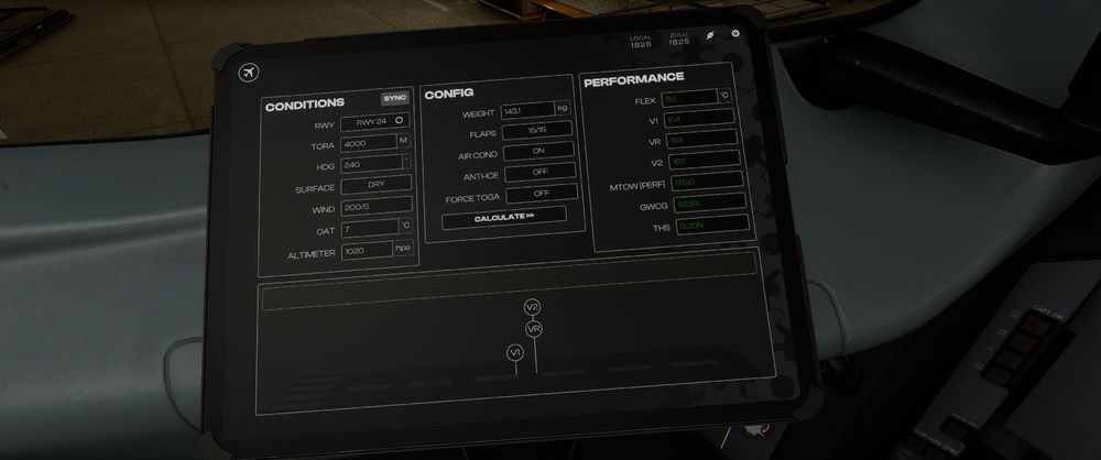 I'm still trying to make sense of the takeoff performance figures. Let's take it step by step and only look at the effect of wind for now. This image assumes a tailwind of 5 knots: And this image is under the same conditions, but with a headwind of 5 knots: I would expect engine thrust to have an effect on V2, but not the wind? Why does the wind have such an effect on V2 while the thrust and flaps stay the same? Since the flaps, the weight and the thrust settings are the same, I'm curious why the wind affects VR? I would have expected VR to stay the same in these conditions. It does make absolute sense, the V1 is very much influenced by the wind, since it changes the GS. It also make sense that it is higher with a headwind. However, since VR was already possible at 157 knots in a tailwind, I would have assumed that V1 would also remain at 157 knots, since it must be less than VR. Is there a bug, that the higher V1 pushes VR instead?