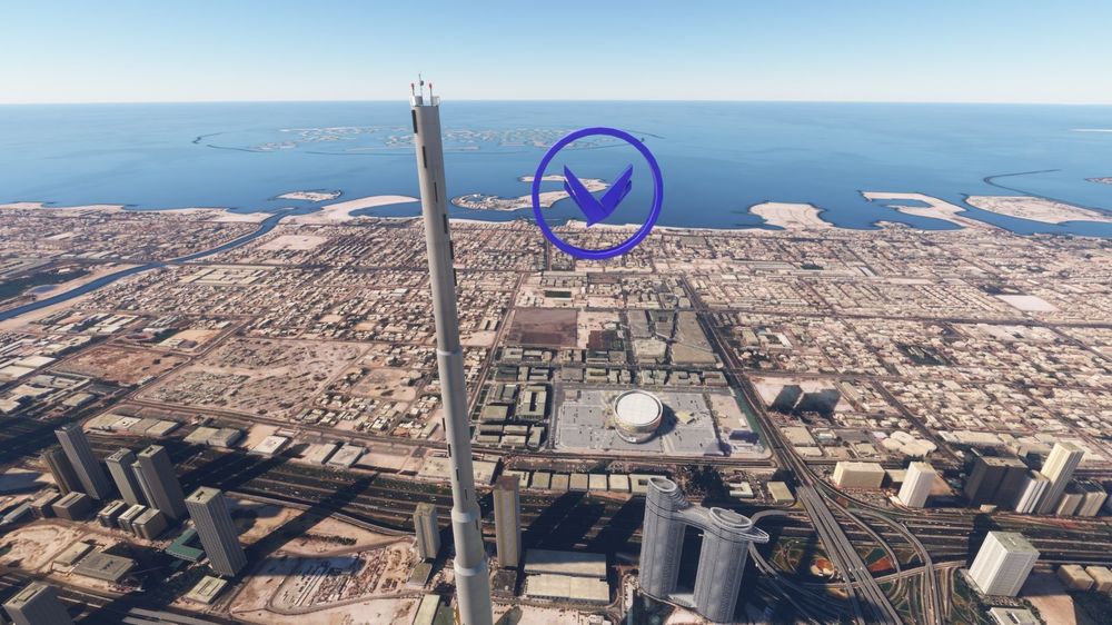 3. Hi, I was zooming around with the free cam on the city of Dubai and found this - not sure where it comes from. A "V" symbol in a circle. I see this only if I zoom very close to the tower. Have inibuilds-airport-omdu-skydive-dubai installed.
