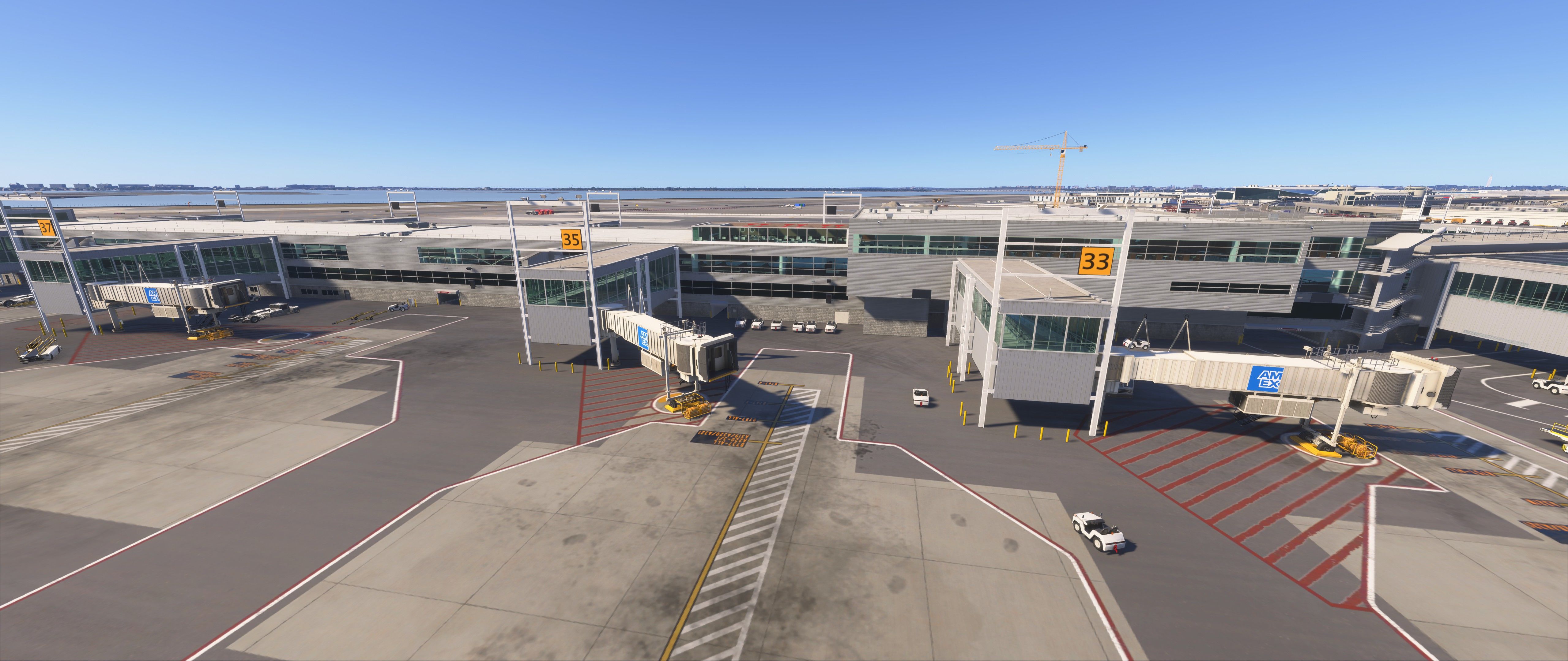 3. Hi. I flew out of gate 37 today and the jetway sign is cut off so you just see AM in the AMEX logo. The jetway is different than the others. I also noticed that the passengers legs stuck out from the bottom of the jetway. The GSX file had a entry for jetway floor height. So i was wondering if the scenery is wrong? I have asobo jfk diabled and scenery indexes reset. Regards