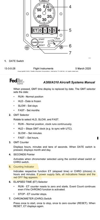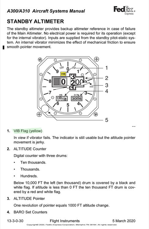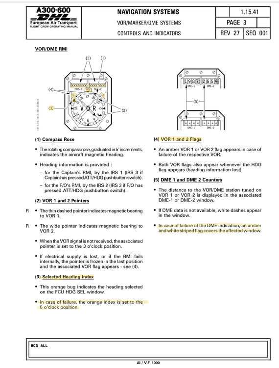 17. When power is removed from the aircraft (C/D), there are various flags missing on the instruments. Example #1 - The little ‘VIB’ vibration flag on the standby altimeter Example #2 - The counting indicator on the clocks should have a red ‘OFF’ flag when power is removed. Example #3 - The RMIs are missing the center HDG flag when power is removed. Also, the two little VOR flags on the left and right could be a little more prominent than they are now. There is also a little orange heading bug which does appear to be modeled in the inI A300. However, this little orange heading bug should move to the 6 o’clock position when power is removed. Finally, the DME counters should have an orange/white hatched flag over them when power is removed. Example #4 - The flags on the ADF RMIs could be a little bit more prominent. They are barely visible now, but they do appear to be modeled. Example #5 - I believe the Standby artificial horizon should have some sort of flag, but I cannot find specific reference material to the type of standby horizon you have modeled. For this one, you may want to check your reference material to see if this one has a flag when powered off. Cheers, Rob