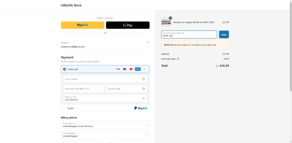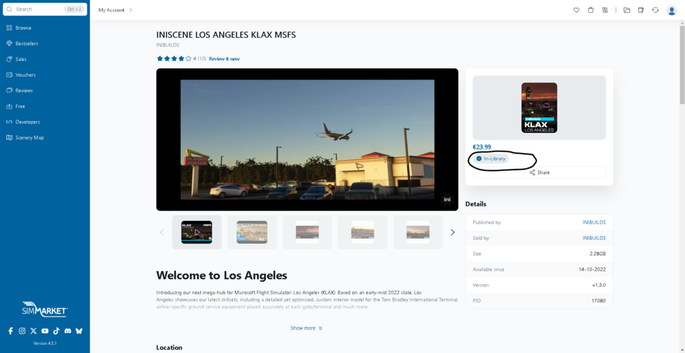 Hi. I bought inibuilds KLAX for msfs2020 through simmarket at the time, and now that I want to purchase the Enhanced version via the website, I enter the code "KLAX-UG" and it cannot process it. I understand that it was paid on a different platform, but I feel that I am entitled to the upgrade discount considering I purchased the 2020 for the full price. You can see in the attached that it is in my library in SimMarket.