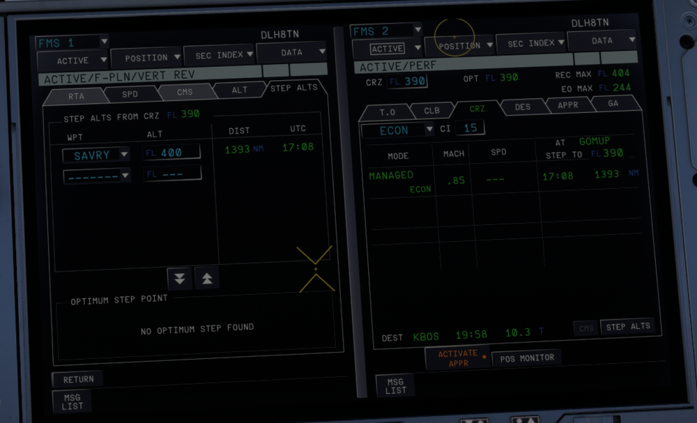 Left side is correct: AT SAVRY STEP TO FL400 Right side is not correct: GOMUP was the last STEP CLIMB from 380 to 390, but the distance and time readout to SAVRY is correct. There should be "AT SAVRY STEP TO FL400".