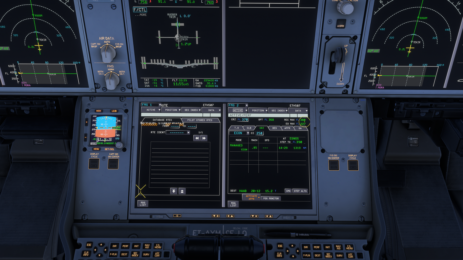 @Eddie I tried one thing before this flight #HAAB-ZSPD. Performance worse this time. Peak 30FPS. I deleted shader cache before the new flight and it actually didnt change anything besides of lower FPS. 10ms more latency, means around 100ms. Over the water sometimes just 28 FPS. Camera movements are more laggy than yesterday. GPU between 37% - 53%, CPU levels between 25 - 36%. I also deactivated all unnecessary payware addons, besides the one you can´t. Only things, Vatsim, gsx, mobiflight, but at least the same test objects. Also ET-AYM as in the test flight yesterday. My next flight will be monday, so i ll send you update on tuesday. !!!Important note - DIR-to and Step CL inputs causes stutters and fps drops around 10!!! Happy weekend for you.