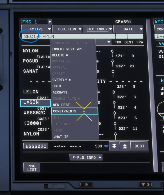 8. Hello, despite some improvements, still a long way to go to get a correct segregation between SEC and ACTIVE FPL. Here is an example of trying to modify an ALT CSTR in the SEC, and falling in the ACTIVE (and wrong waypoint BTW ! - EGEMU was one of my active FPL WPTS, very far behind my actual position-) so feature STILL unusable at this point...