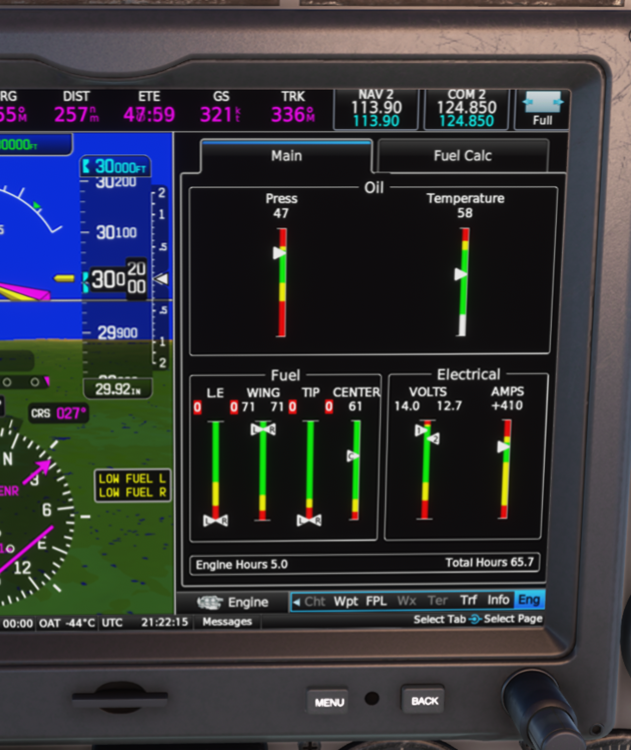 Hi, On the G3x with the fuel main page open, go to the Fuel Calc page and then back to the main page. Both the oil pressure and temperature bars lose their color bands. Closing and reopening the fuel page rectifies this. Cheers, John