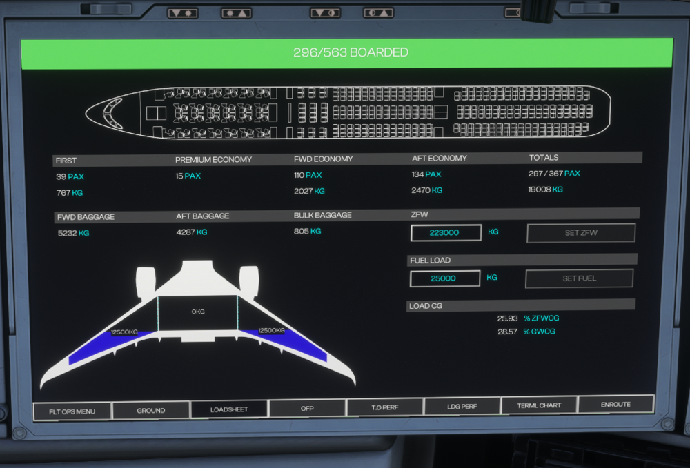 4. Found another discrepancy. When loading the passengers, the max number of paxs is way above the value indicated in the EFB. You can clearly compare both the GSX recognized MAX vs the EFB aircraft MAX. 563 vs 367.