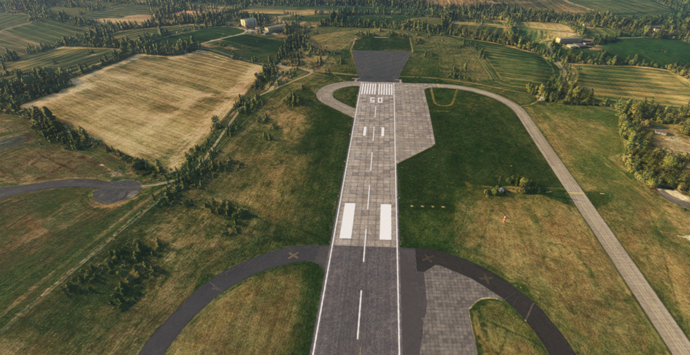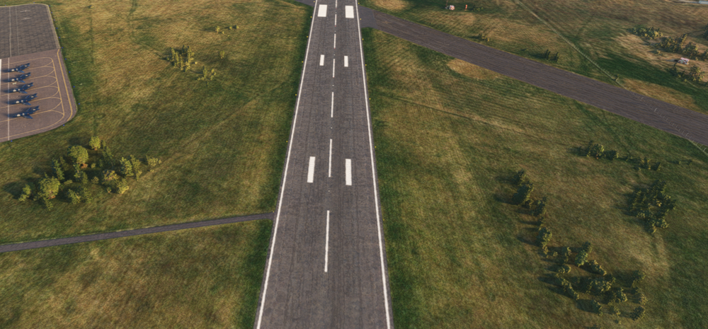 Runway 26 is predominantly grooved asphalt (or rather whatever material it is made of, I have forgotten its actual name), however has a tiled concrete section at its threshold. The main runway texture (as in, not the tiled concrete) sticks out underneath the threshold at the very end of the runway. This is not a major issue, and I'm sure isn't noticeable enough to be a huge issue for many virtual pilots.