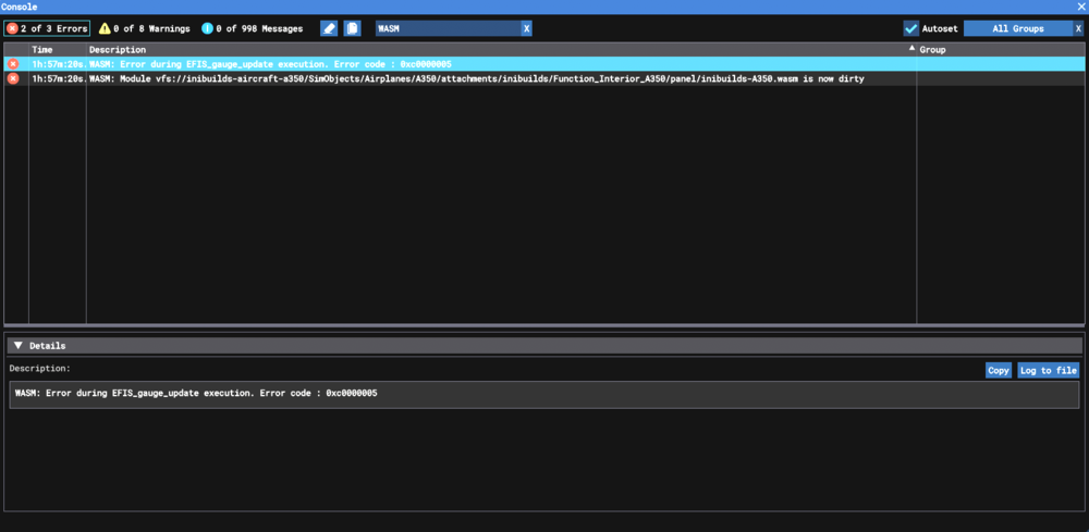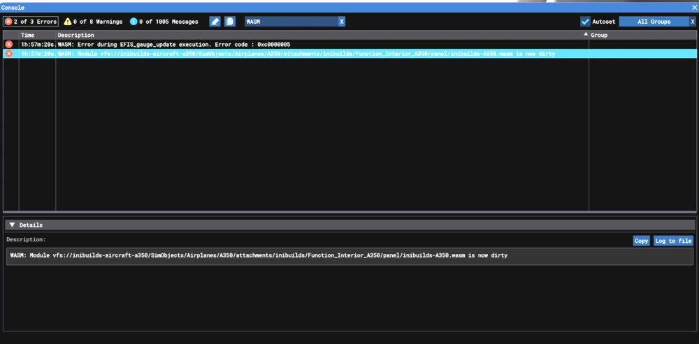 2. WASM crash happened whilst switching between Edge and MSFS 24 as the place was passing through about FL170 climbing. I've completed 4/5 long hauls with - problems so far so surprised to get this. I have changed in my bios to disable hyperthreading so unsure at this stage if it's related. Will re-try tomorrow. Aircraft: A350-1000 Simulator: MSFS24 with SU1. Navdata Method: NAVIGRAPH OFP: Attached WASM Error: See screenshots below PC Specs CPU - 11700K Memory - 64gb G Skill Trident X DDR4 GX - 4090 RTX MSI SSD - Samsung SSD980 PRO M2 2TB EGLLKSAN_PDF_1741606159.pdf