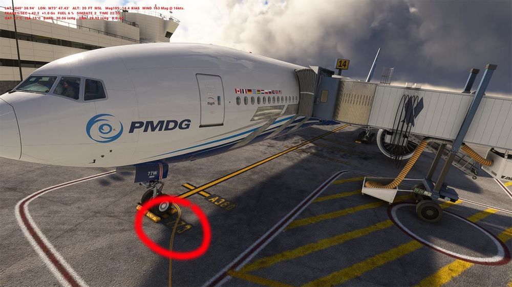 Also, by default, the aircraft is positioned too far forward, with the cockpit in the wall. But with GSX I was able to move it back correctly. Nevertheless GSX doesn't let you adjust the positions in and out of the gateway. On the pic I think the gateway is fully extended, too short to the door.